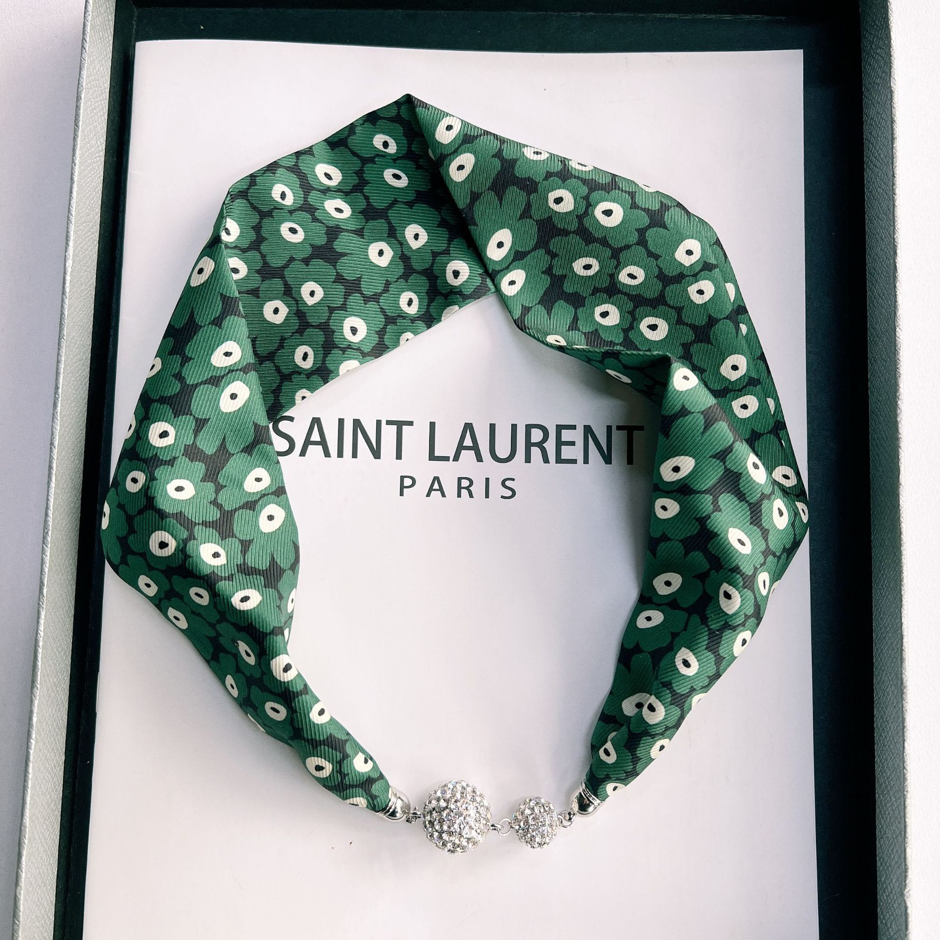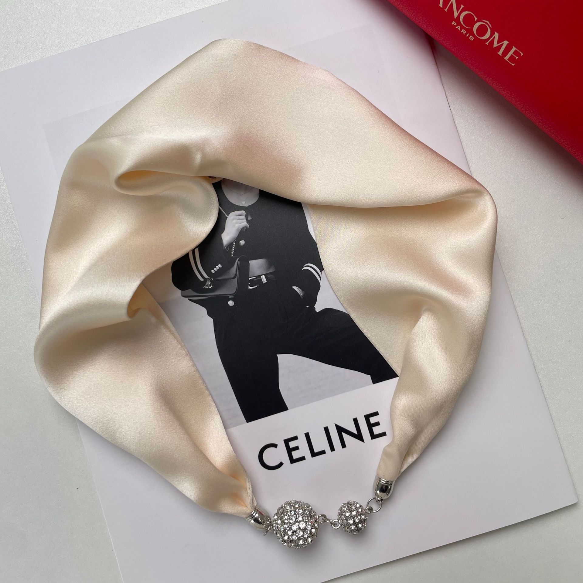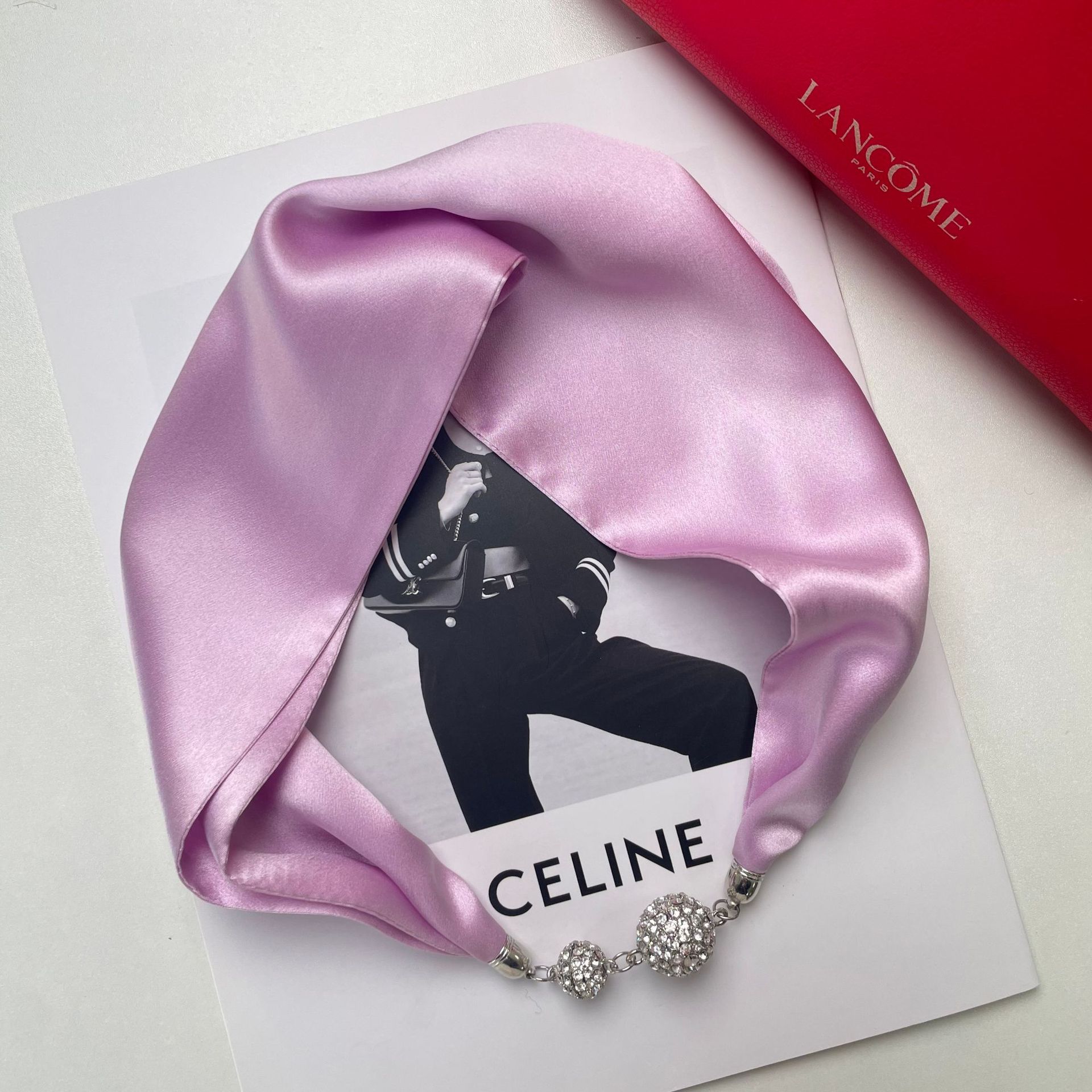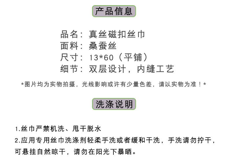 여름 복고풍 마그네틱 버클 작은 긴 자석 뽕나무 실크 스카프 목걸이 다기능 게으른 실크 리본 스카프
