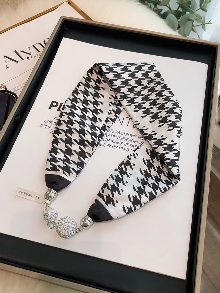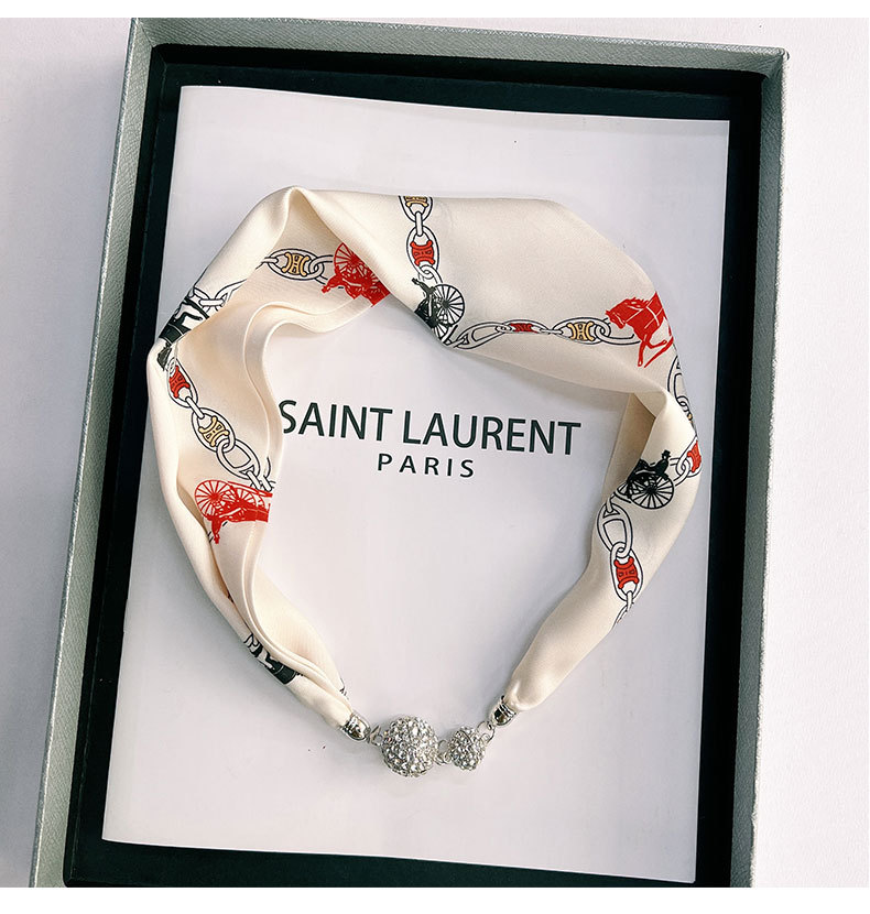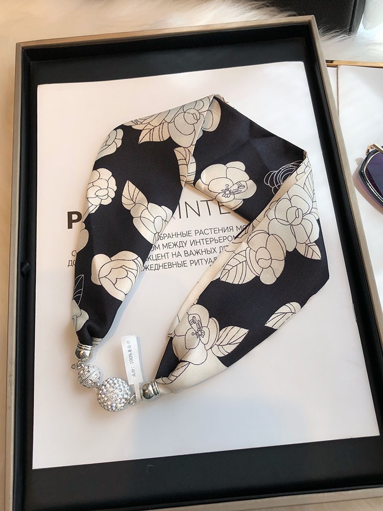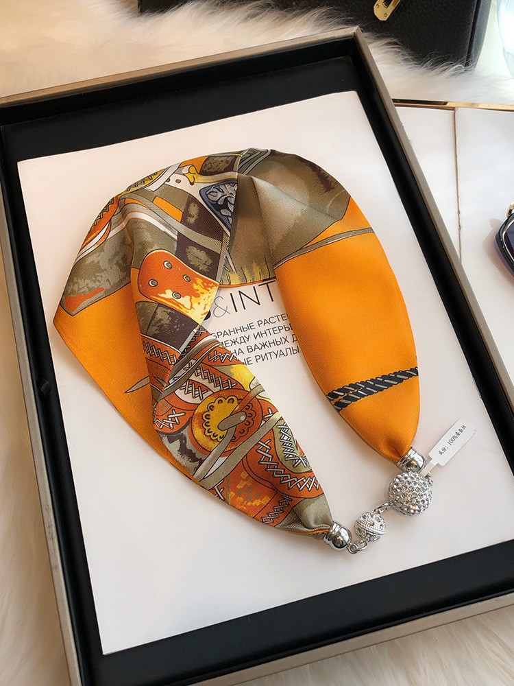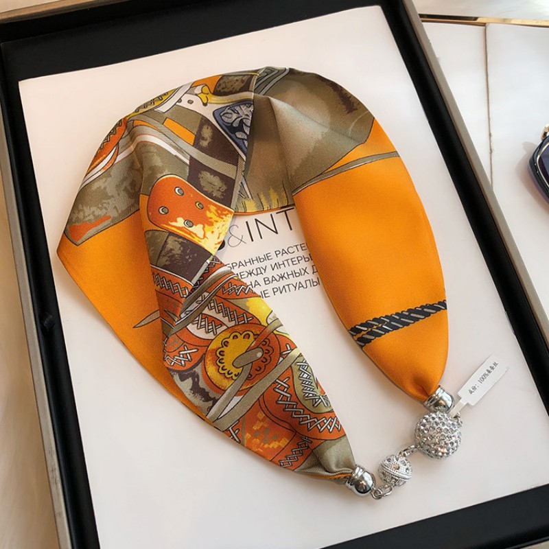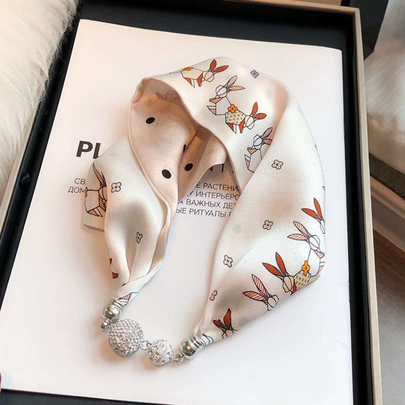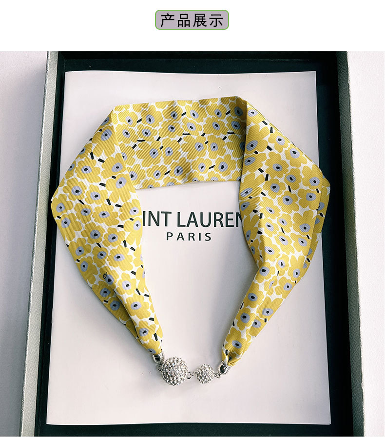 여름 복고풍 마그네틱 버클 작은 긴 자석 뽕나무 실크 스카프 목걸이 다기능 게으른 실크 리본 스카프스토어 가기