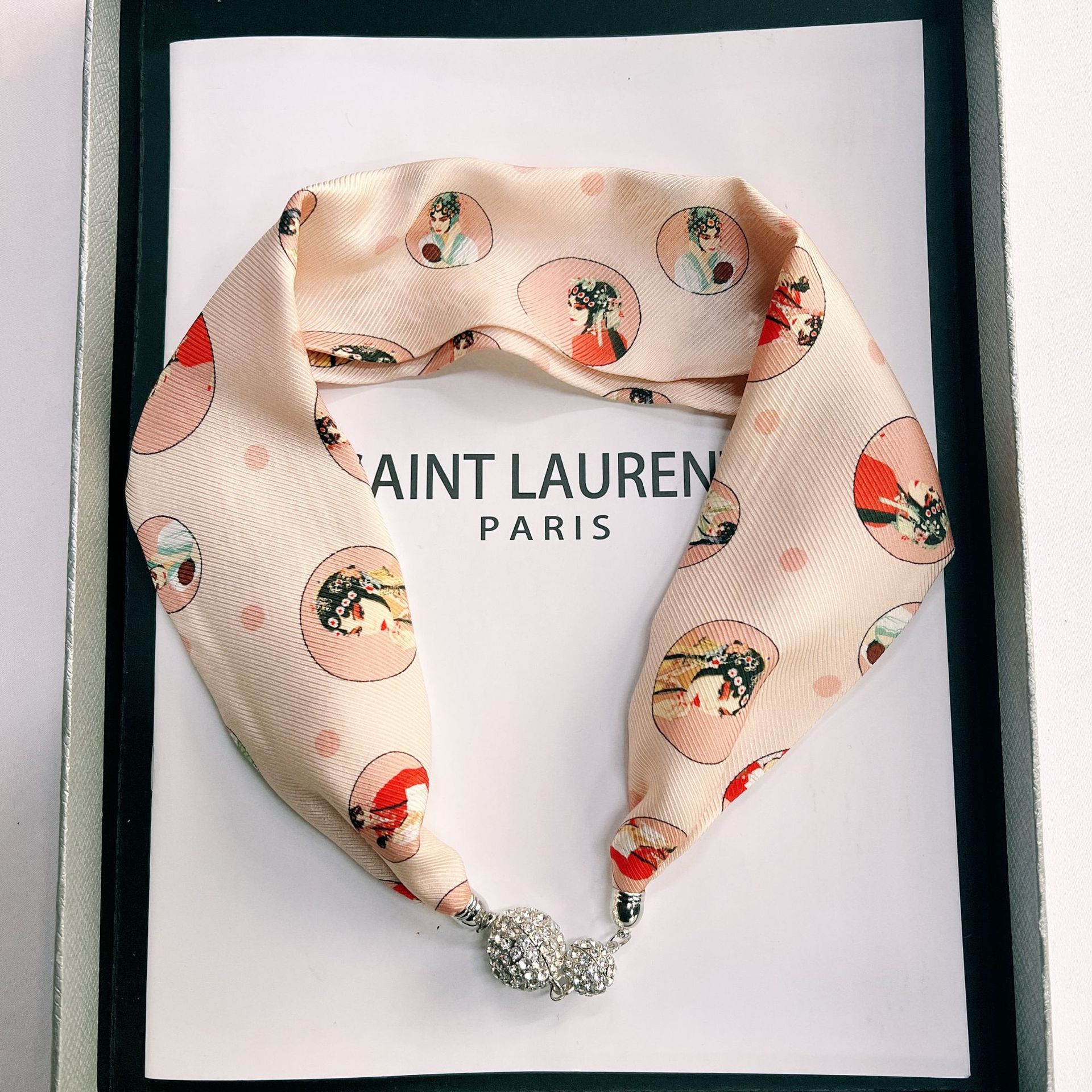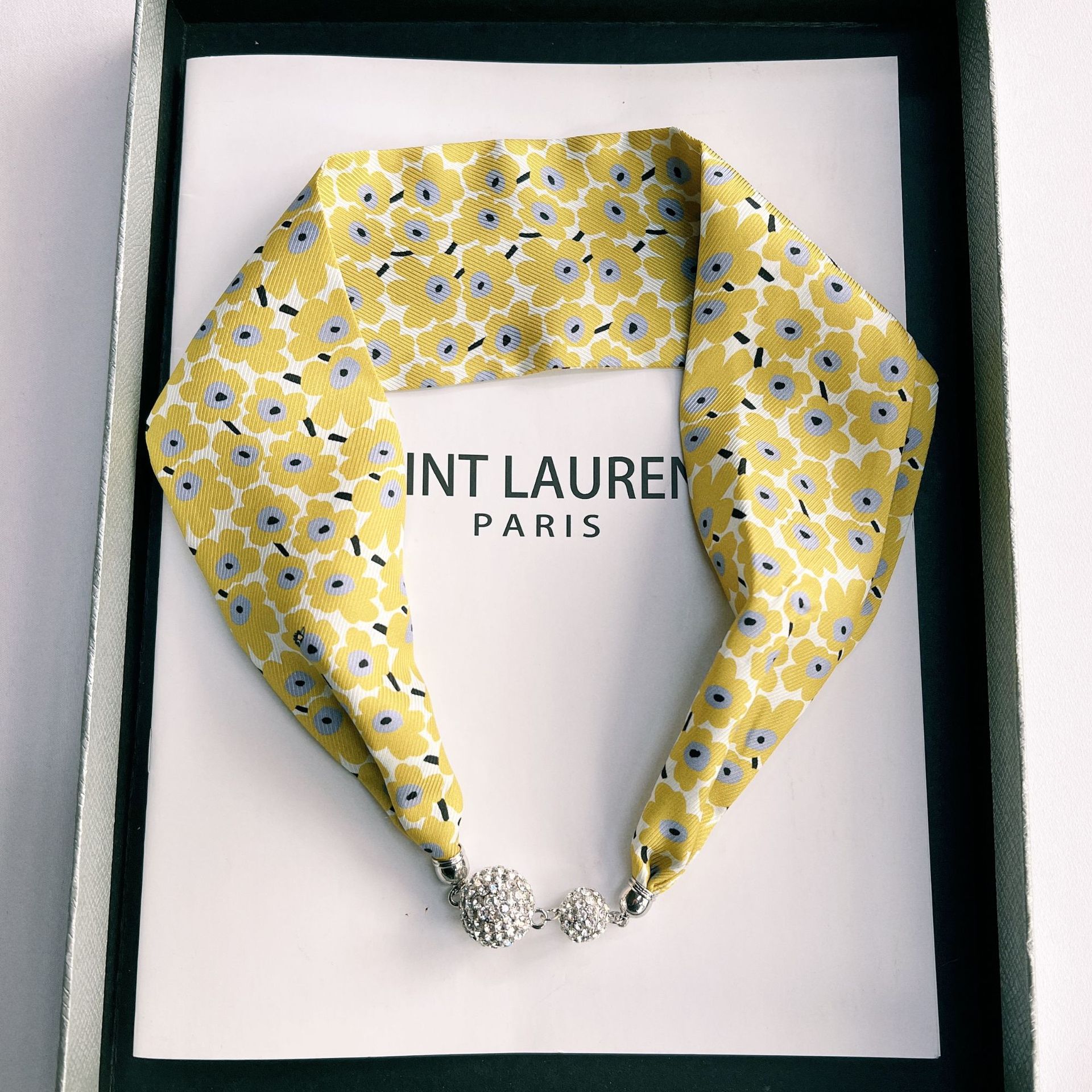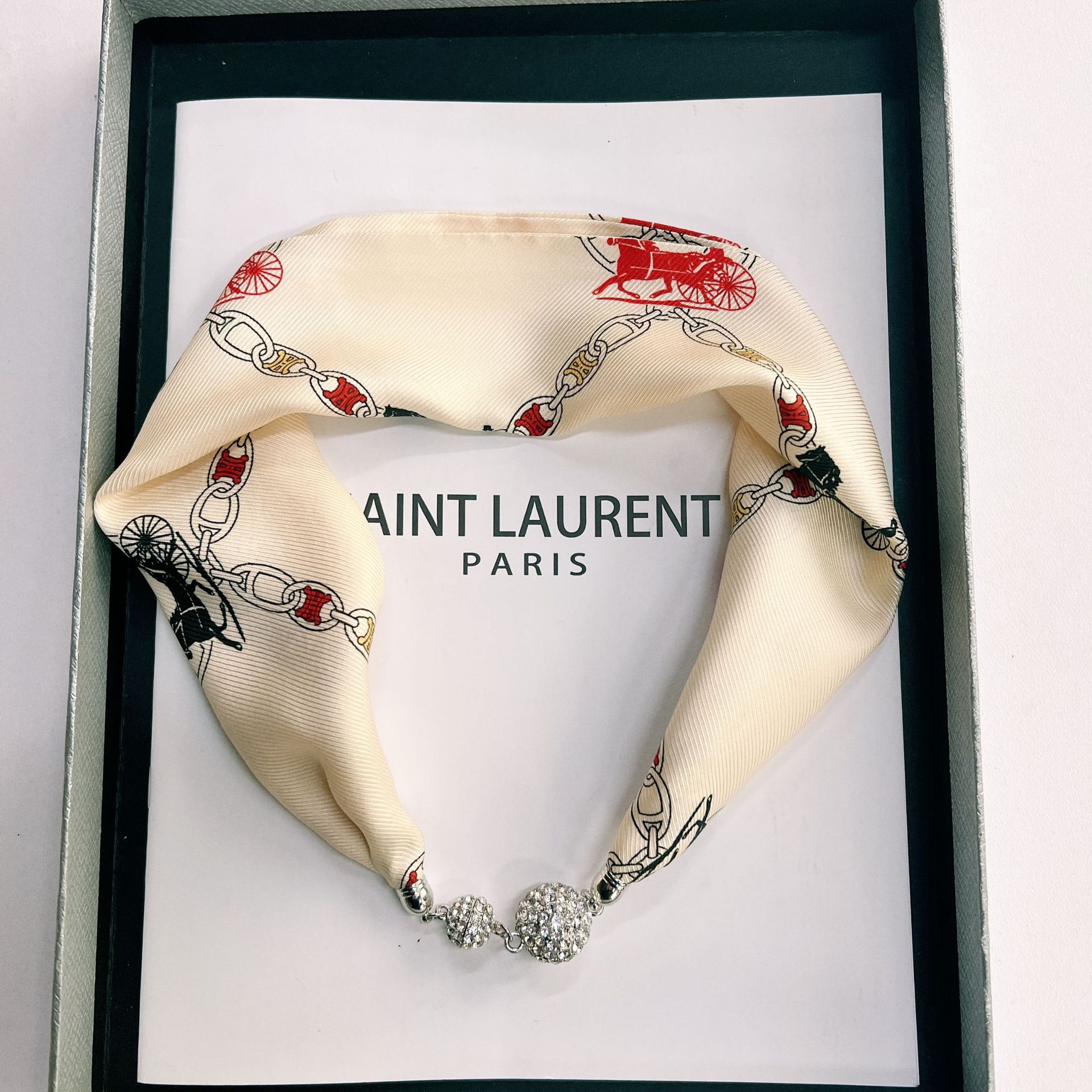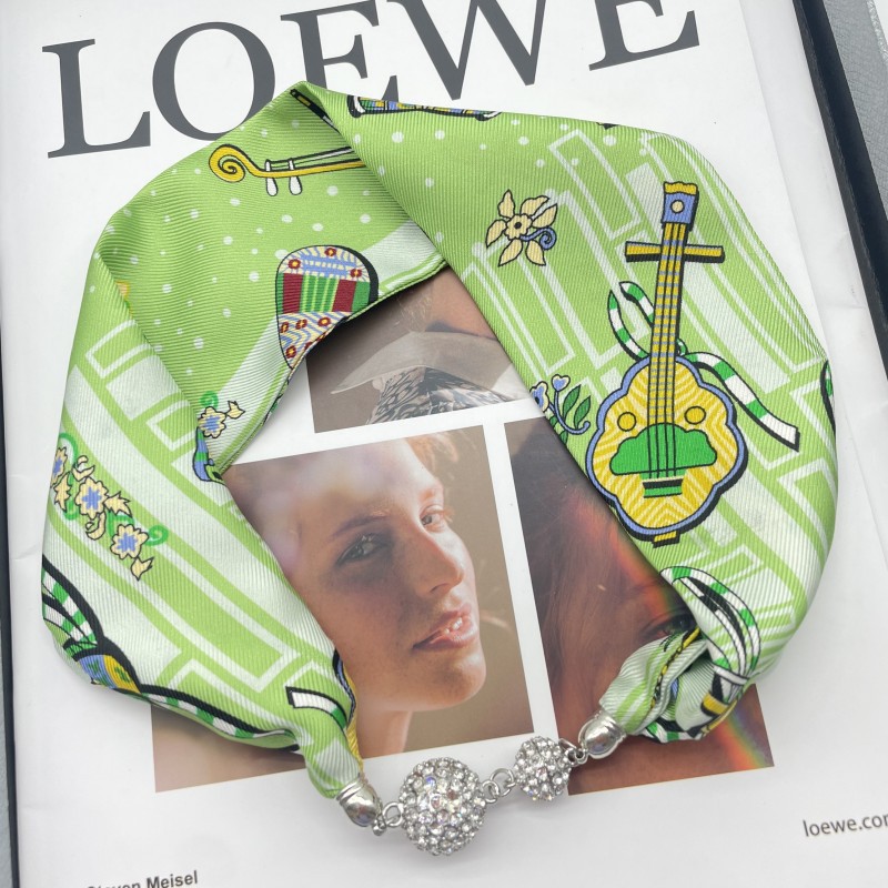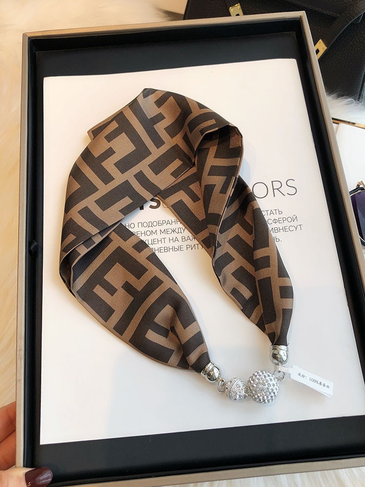 여름 복고풍 마그네틱 버클 작은 긴 자석 뽕나무 실크 스카프 목걸이 다기능 게으른 실크 리본 스카프스토어 가기