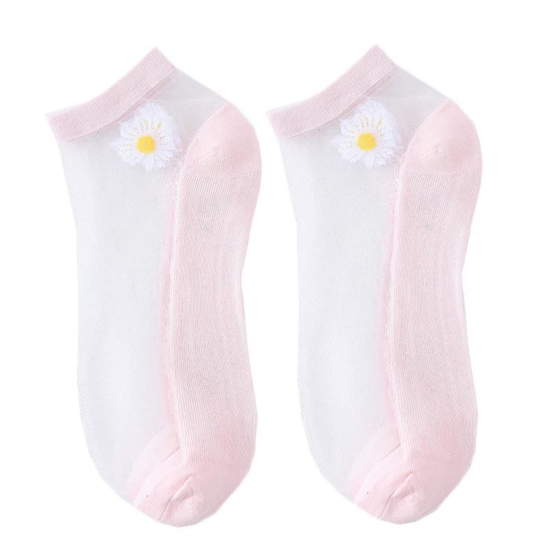 양말 여자 봄과 여름 조커 소 데이지 꽃 크리스탈 양말 유리 카드 스타킹 여자 얇은 보트 양말 10 쌍 도매