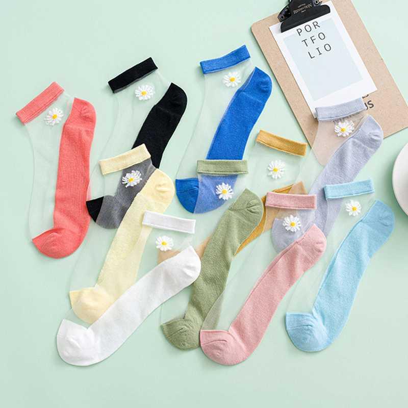 양말 여자 봄과 여름 조커 소 데이지 꽃 크리스탈 양말 유리 카드 스타킹 여자 얇은 보트 양말 10 쌍 도매스토어 가기