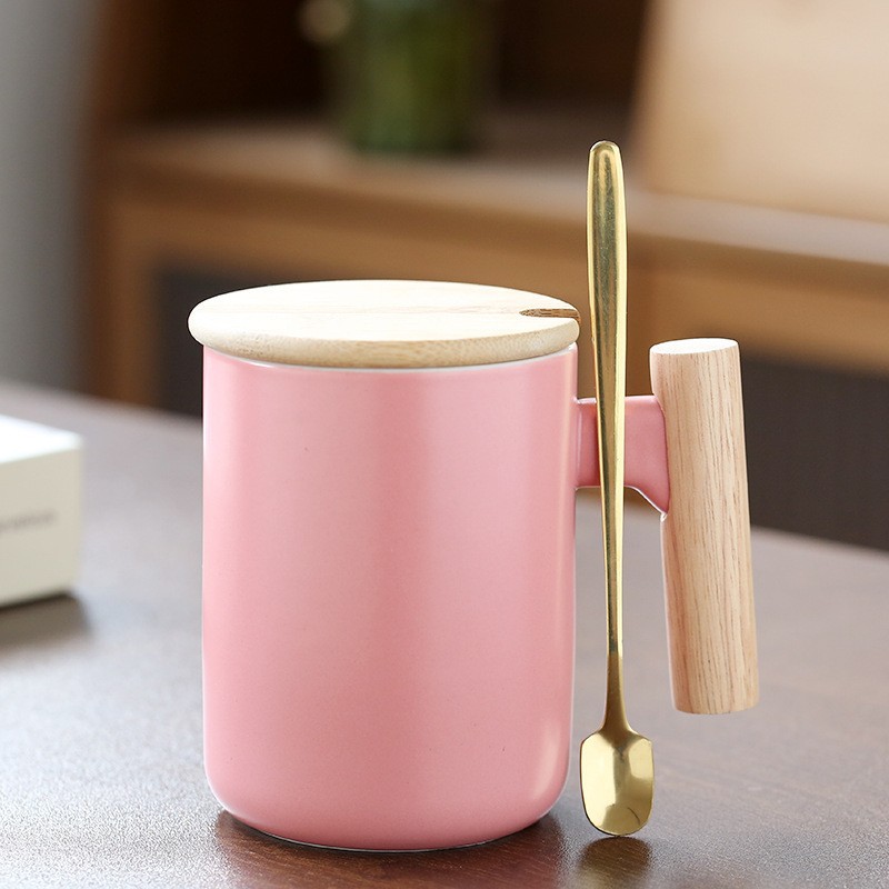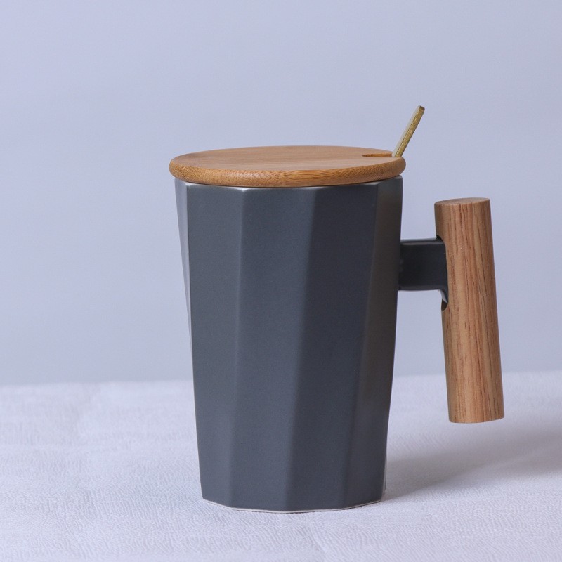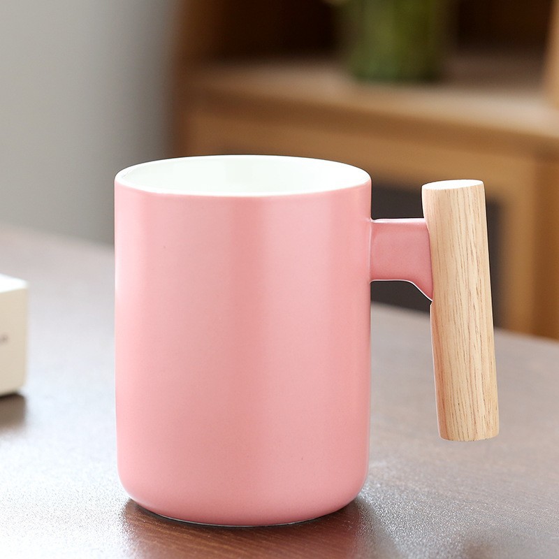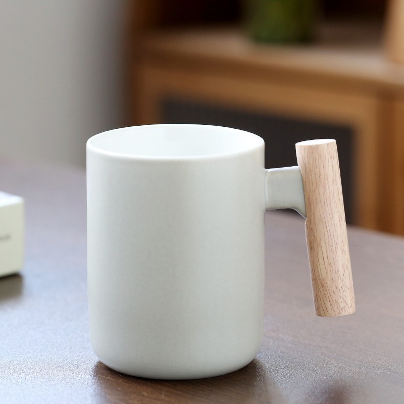 북유럽 스타일 크리 에이 티브 나무 손잡이 세라믹 머그 커피 머그 사무실 휴일 이벤트 선물 로고스토어 가기