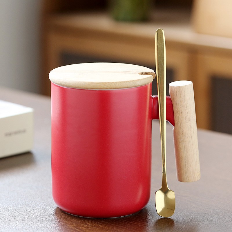 북유럽 스타일 크리 에이 티브 나무 손잡이 세라믹 머그 커피 머그 사무실 휴일 이벤트 선물 로고