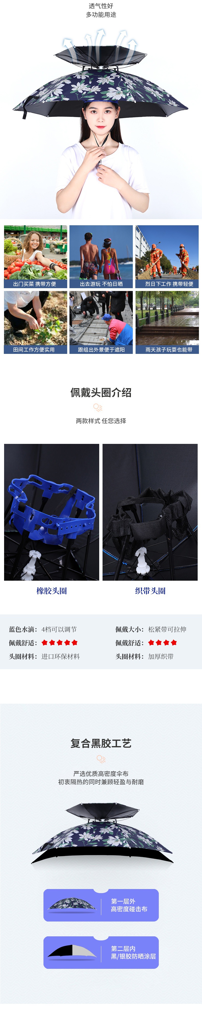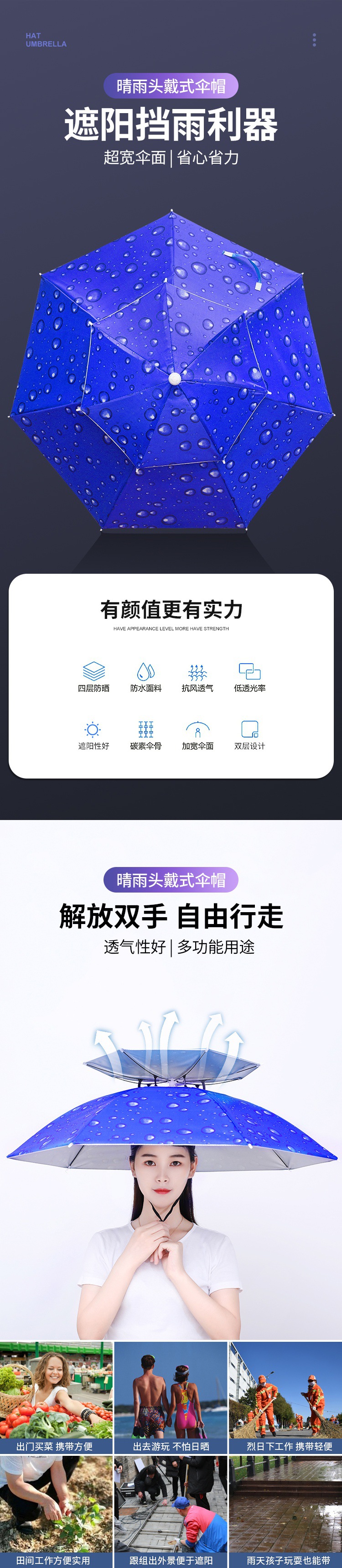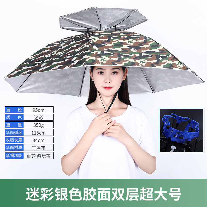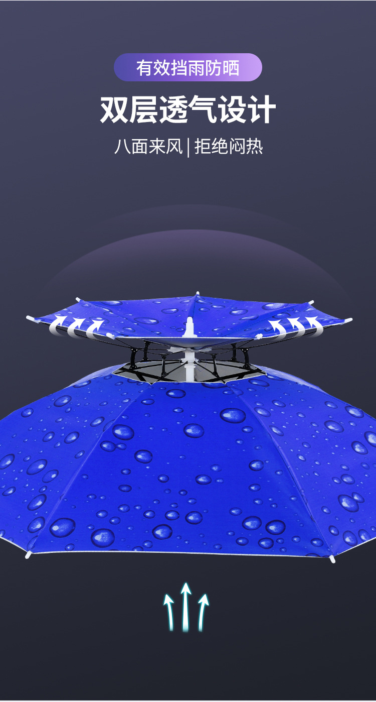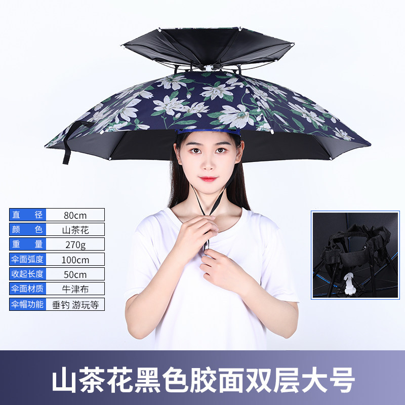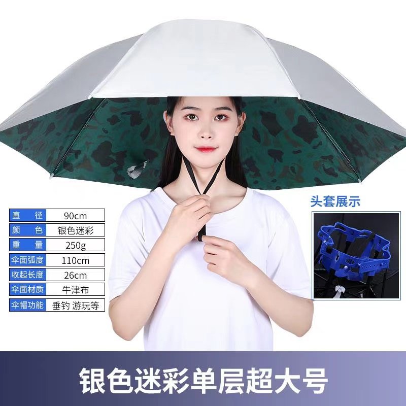 더블 레이어 우산 게으른 남자 우산 모자 머리 장착 태양 비 방지 탑 태양 방지 그늘 야외 대형 접이식 모자 보기