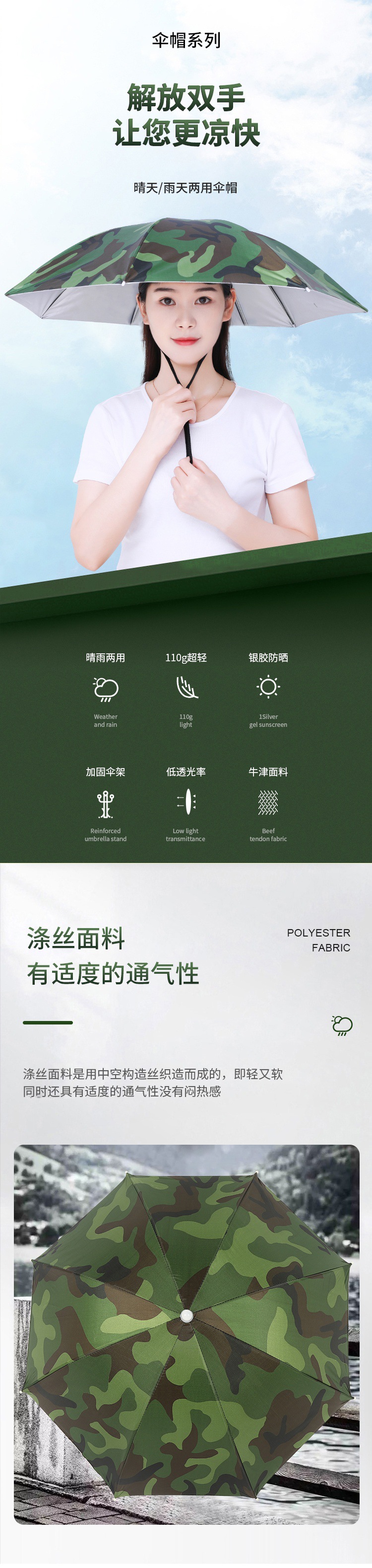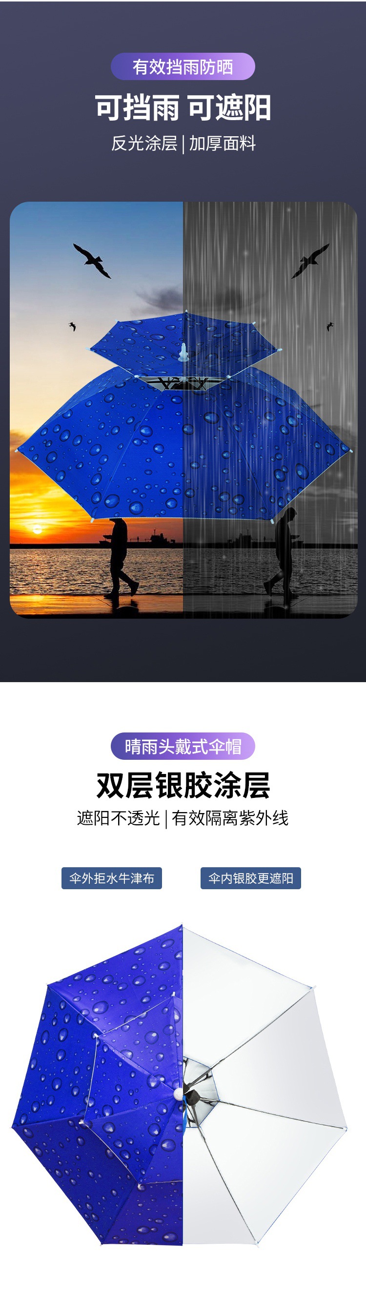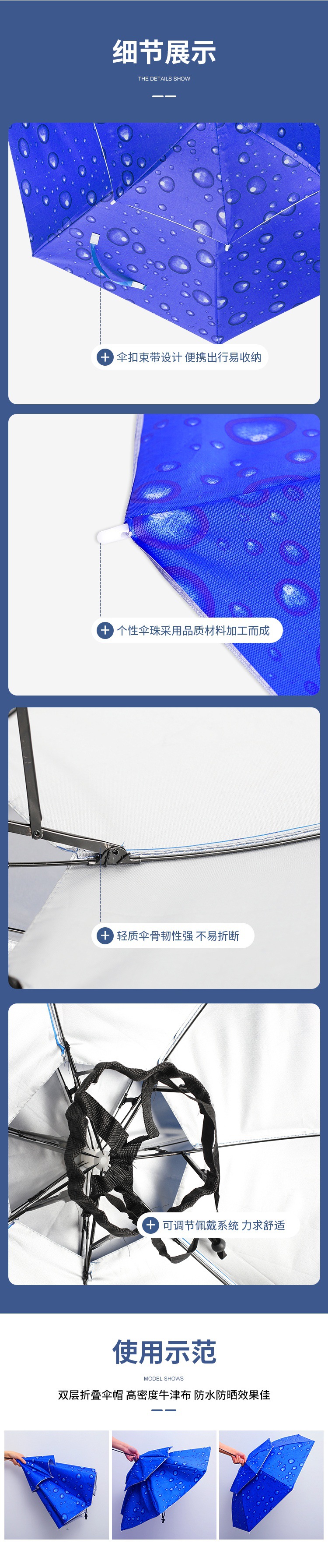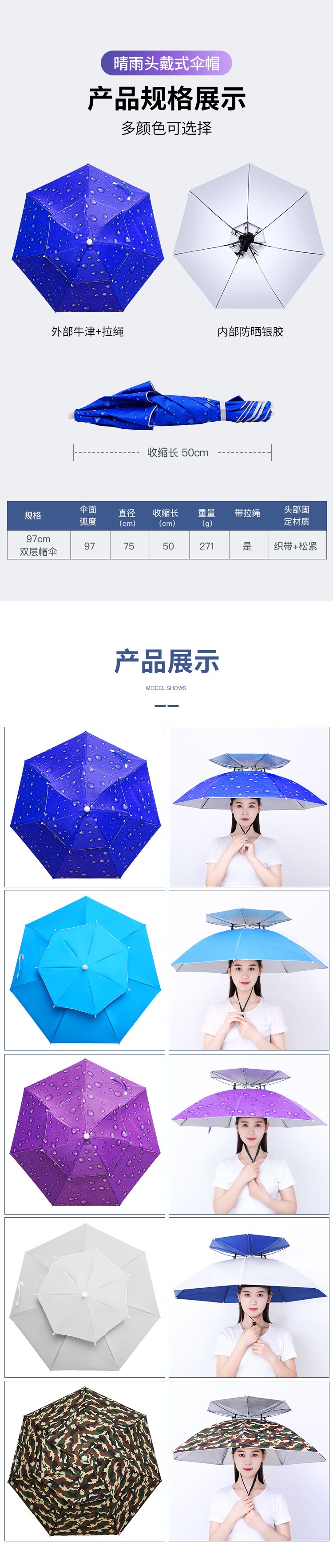 더블 레이어 우산 게으른 남자 우산 모자 머리 장착 태양 비 방지 탑 태양 방지 그늘 야외 대형 접이식 모자 보기