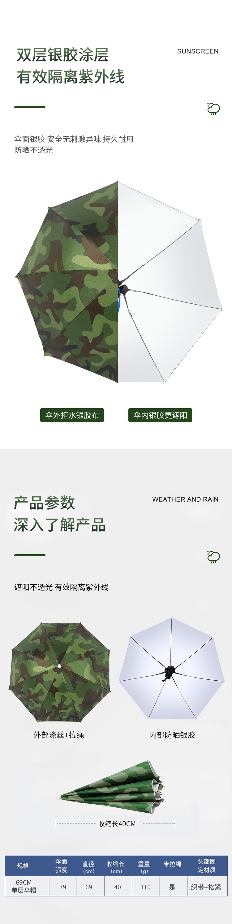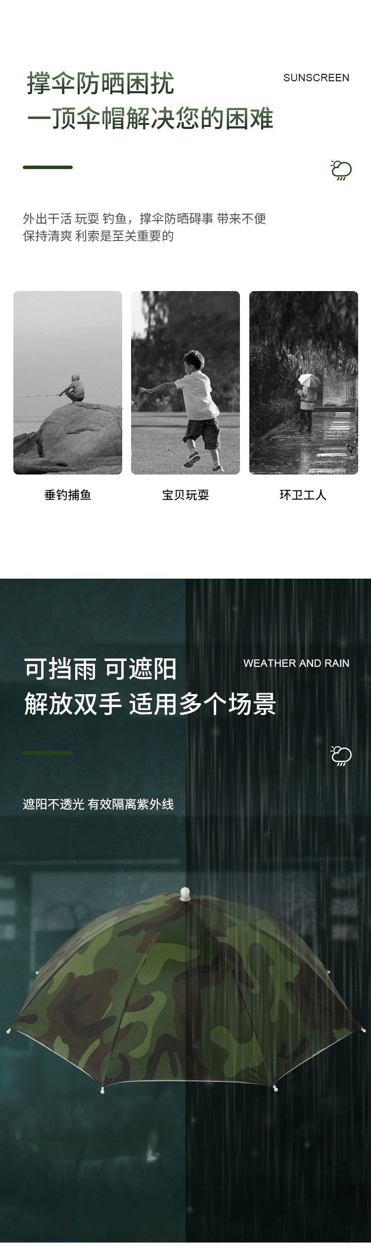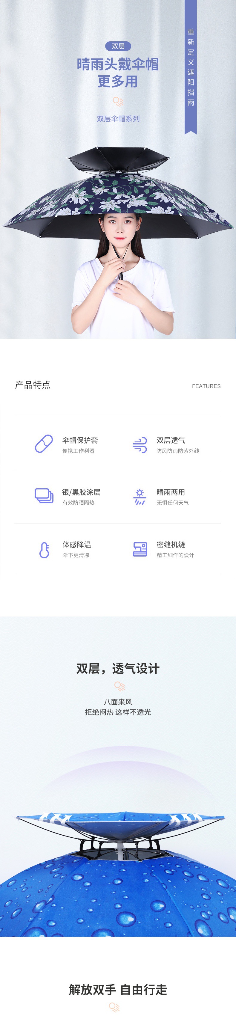 더블 레이어 우산 게으른 남자 우산 모자 머리 장착 태양 비 방지 탑 태양 방지 그늘 야외 대형 접이식 모자 보기스토어 가기