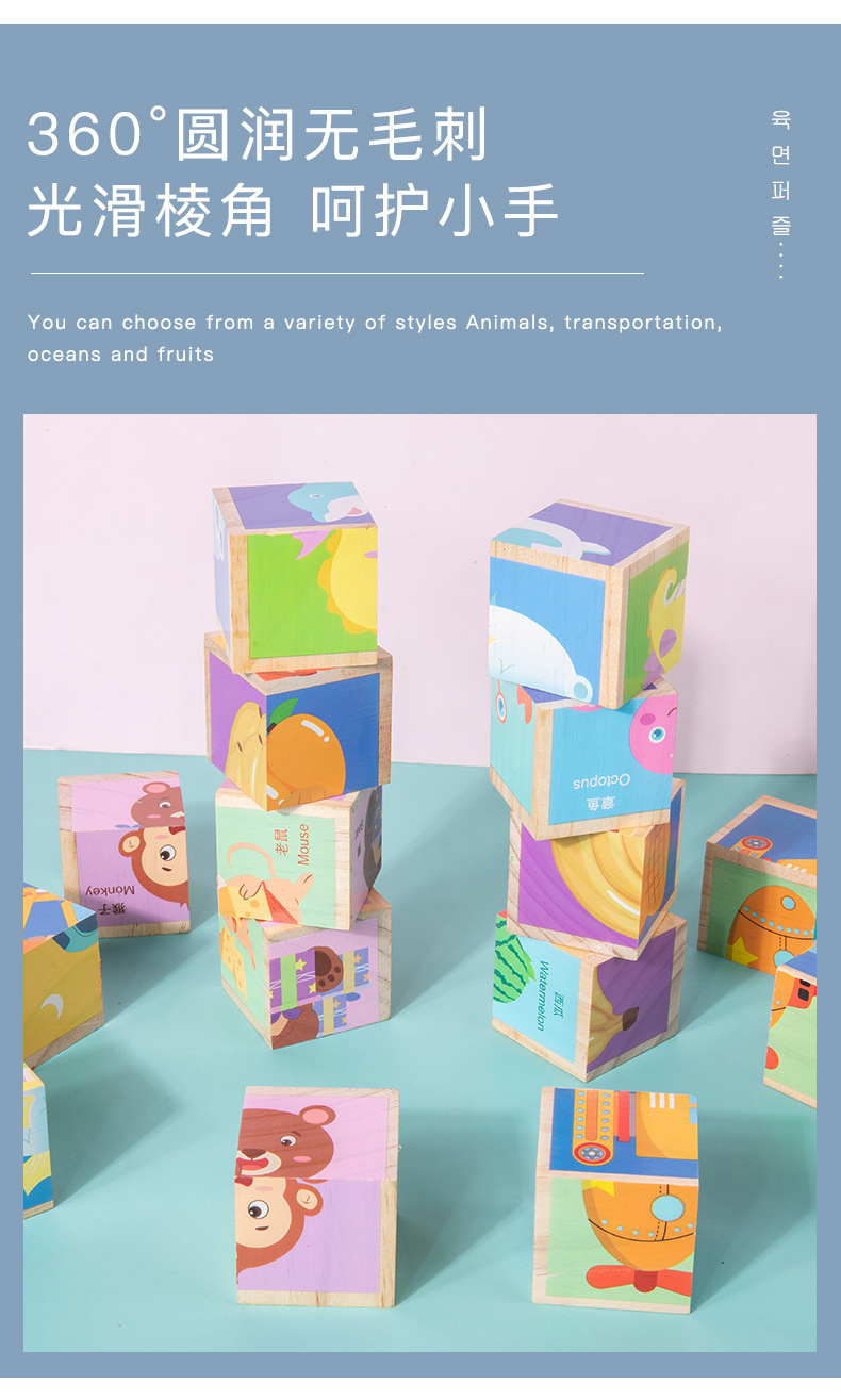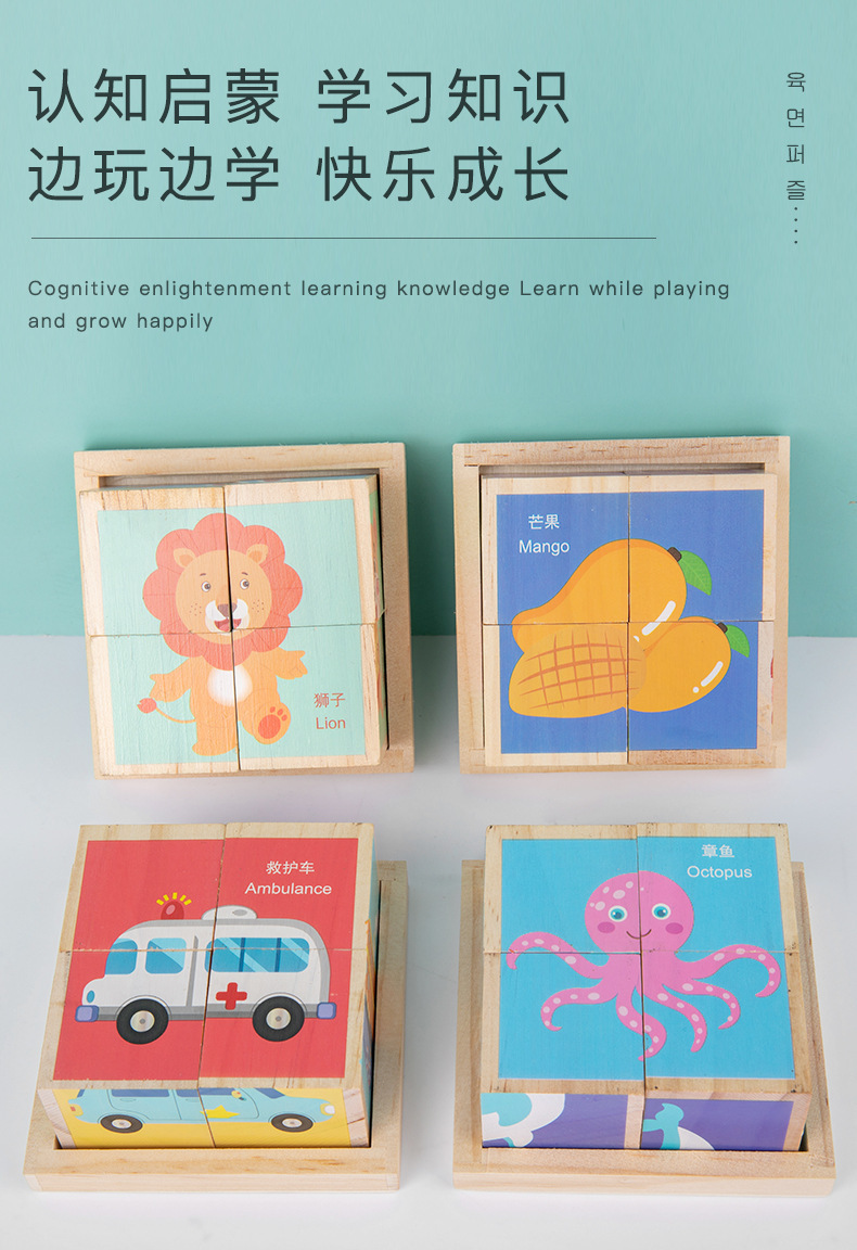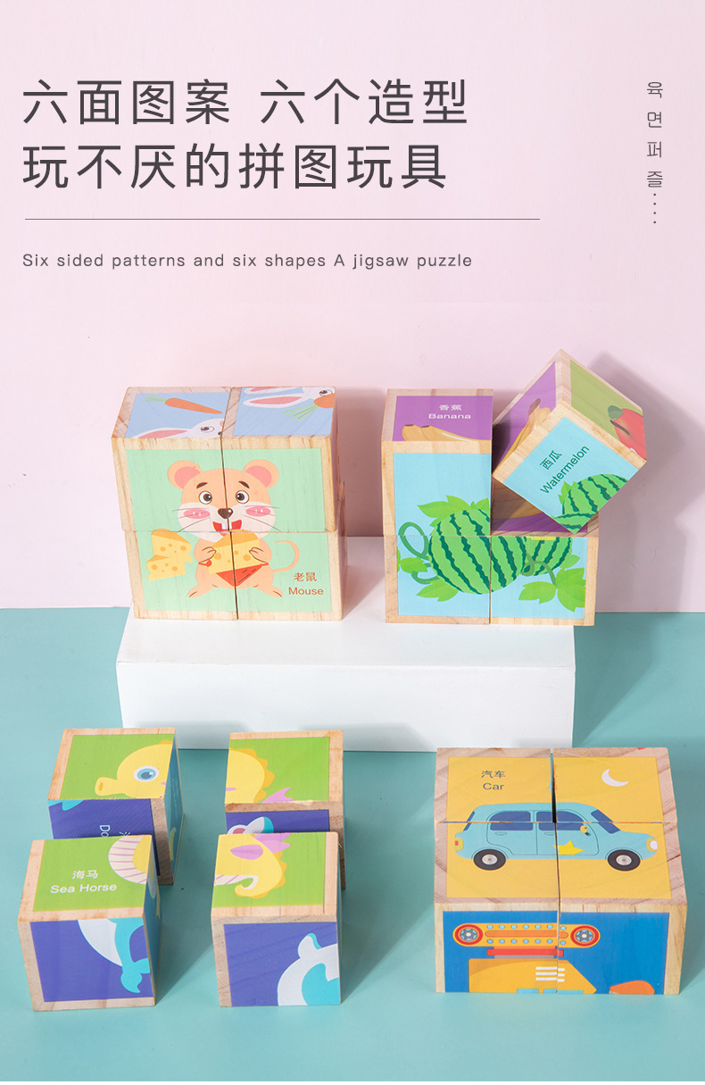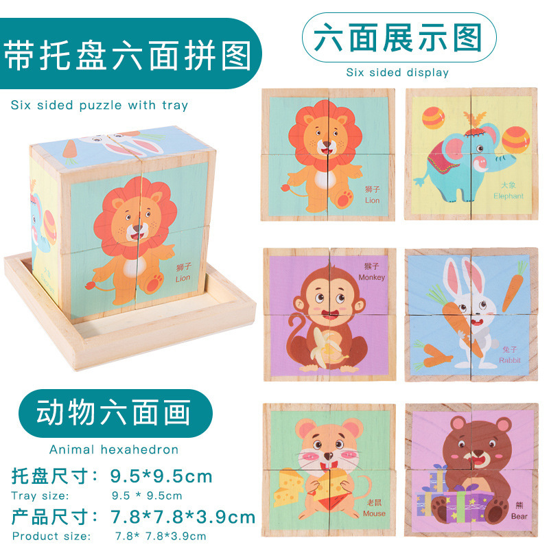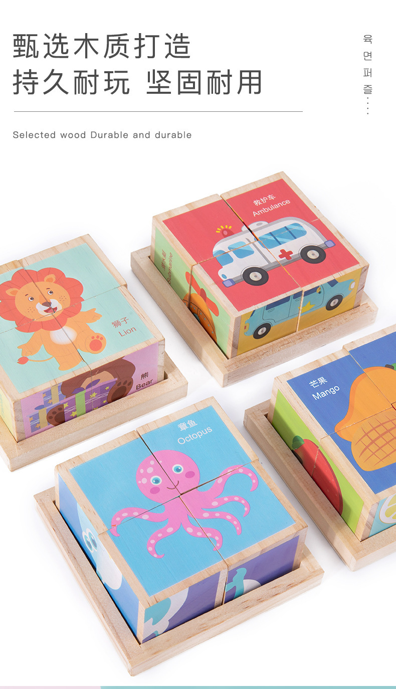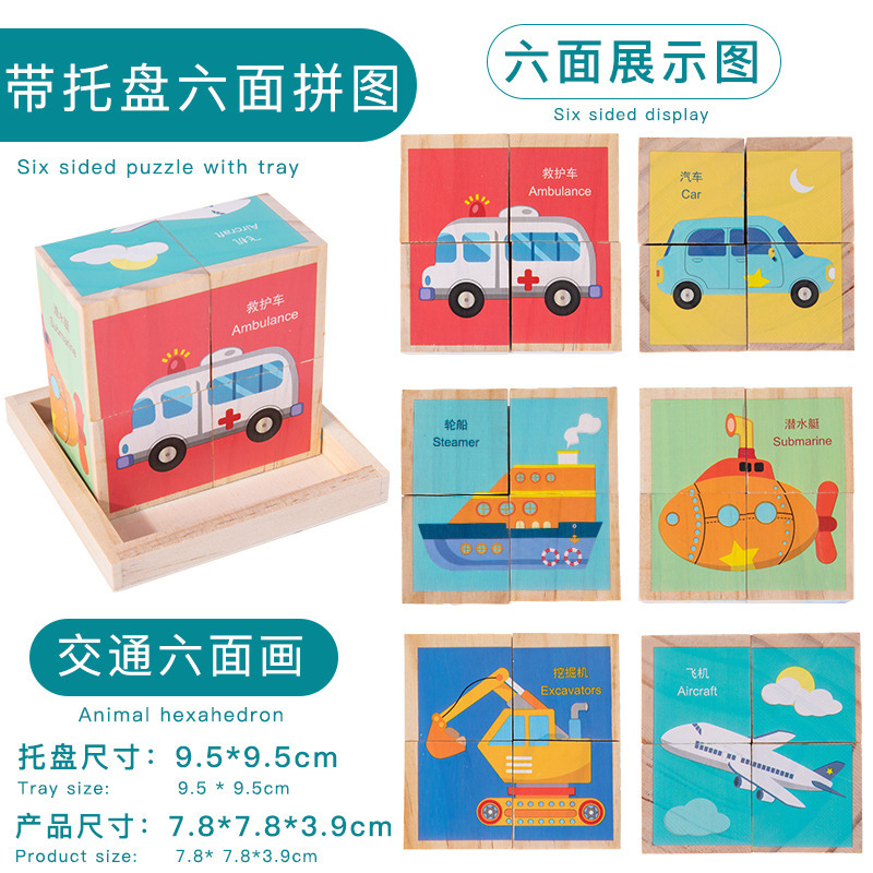 나무 육면 그림 퍼즐 3 차원 교통 동물 퍼즐 어린이 퍼즐 조립 빌딩 블록 조기 교육 완구스토어 가기