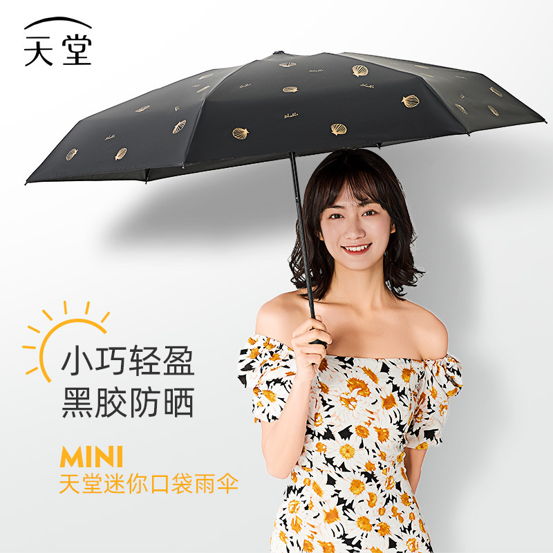 파라다이스 51116E 바다 조개 5 배 우산 블랙 접착제 자외선 차단제 미니 포켓 휴대용 캡슐 자외선 차단 양산 우산스토어 가기