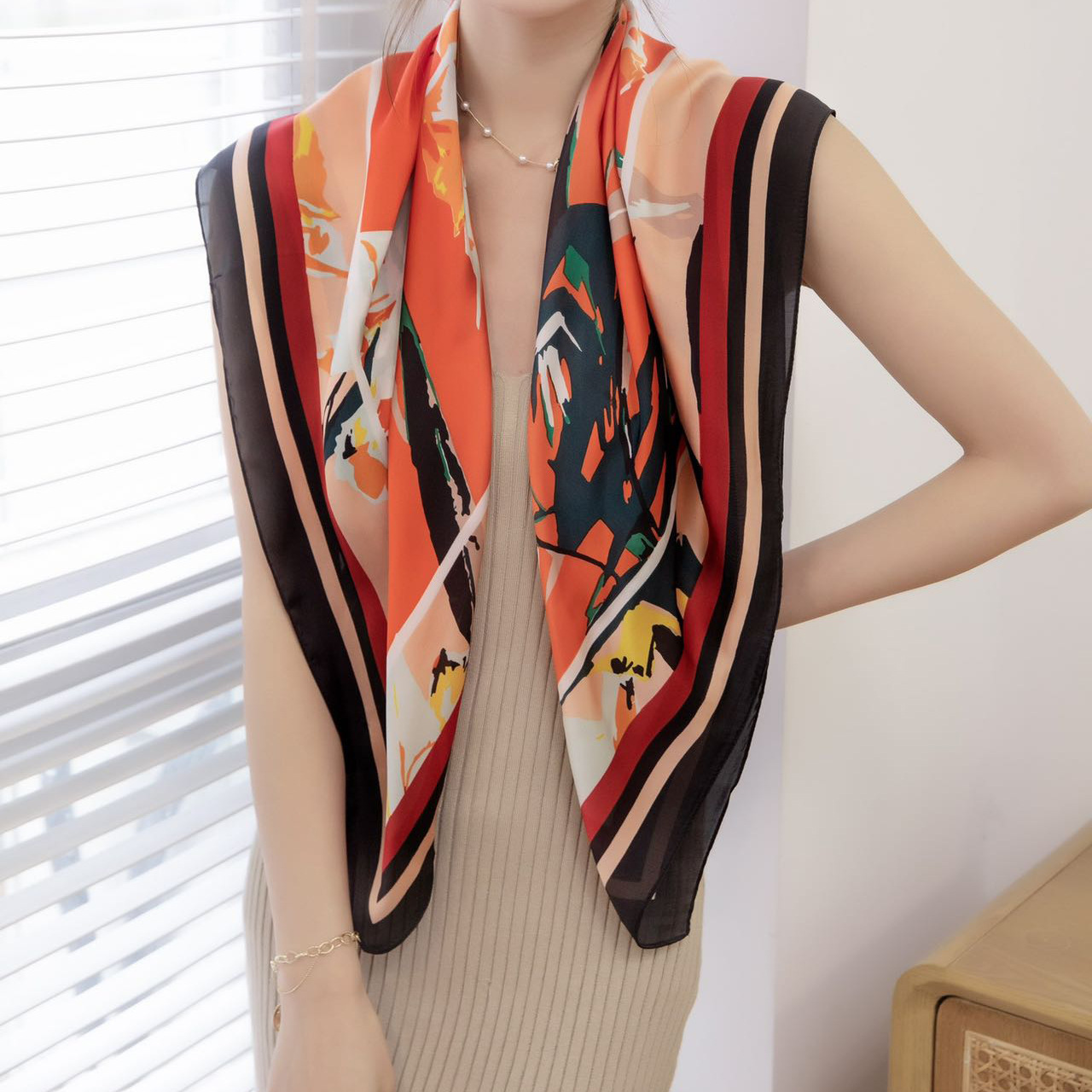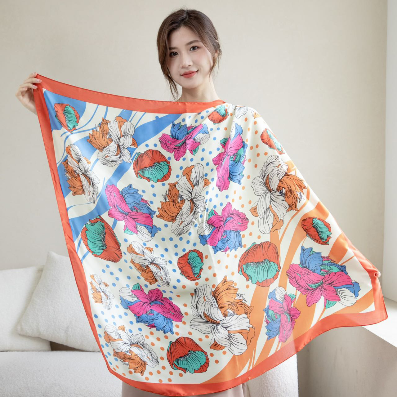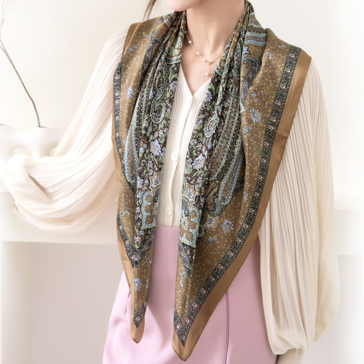 봄과 여름 새로운 90cm 큰 사각형 스카프 목가적 인 식물 꽃 스카프 한국 우아한 여성 목도리 스카프