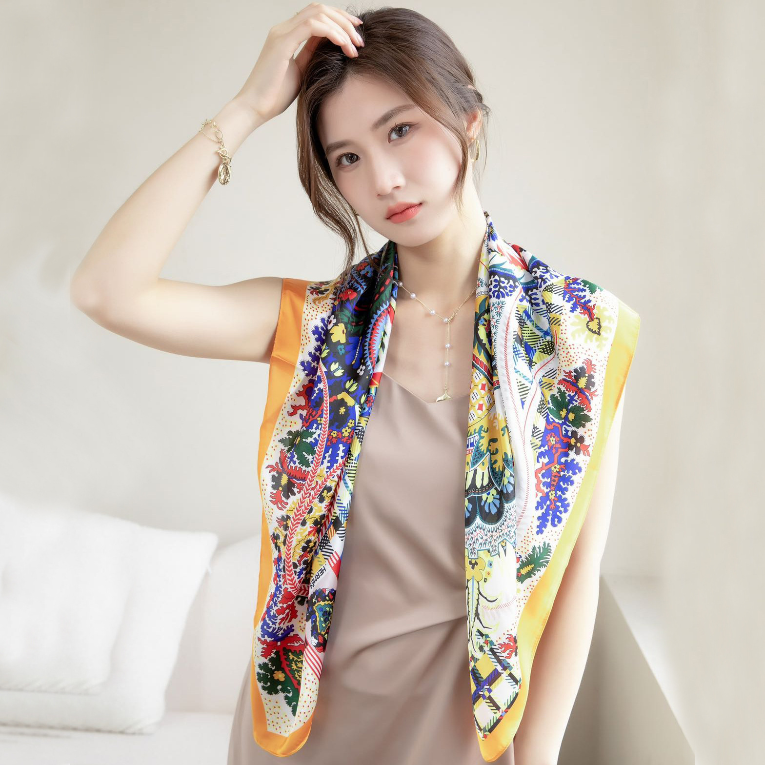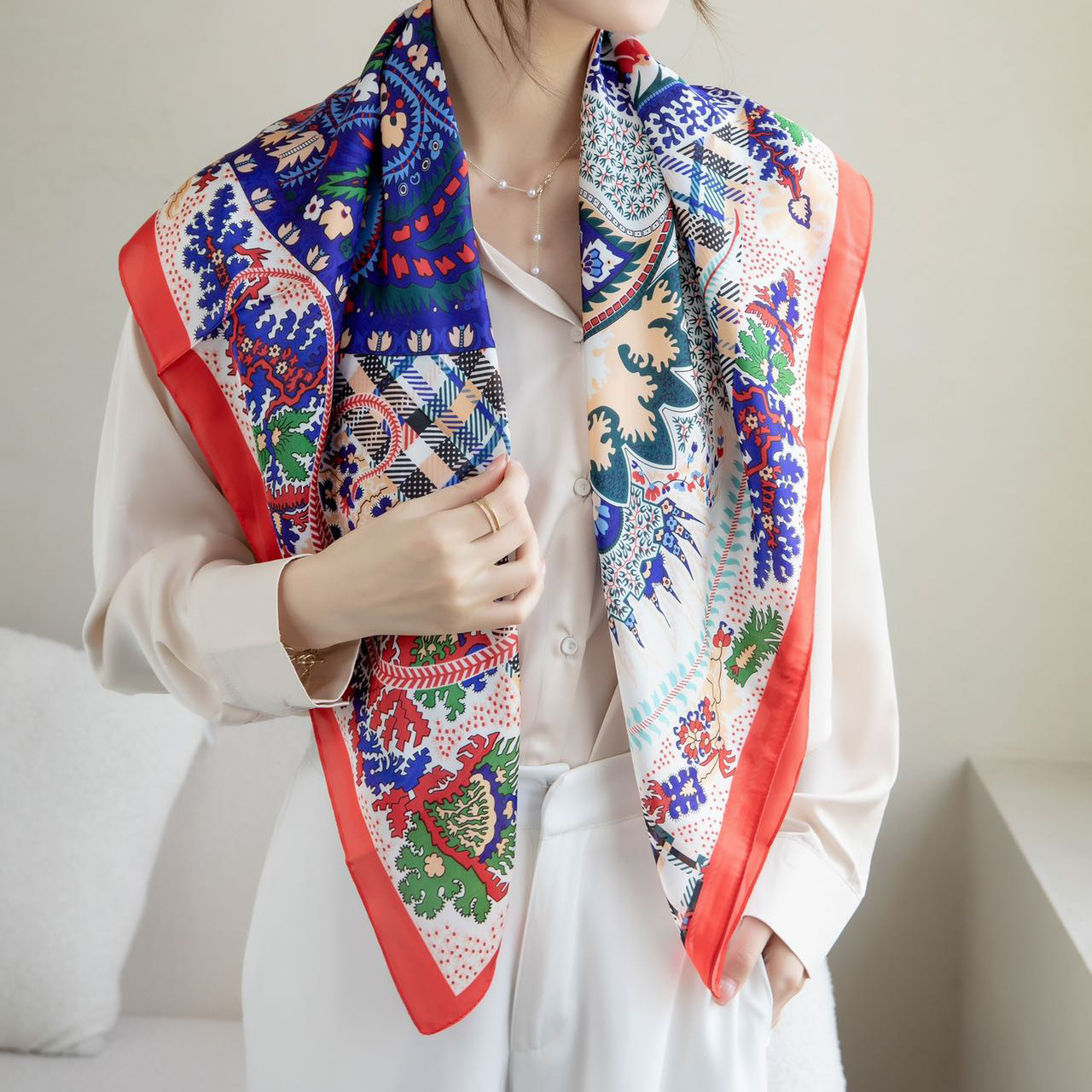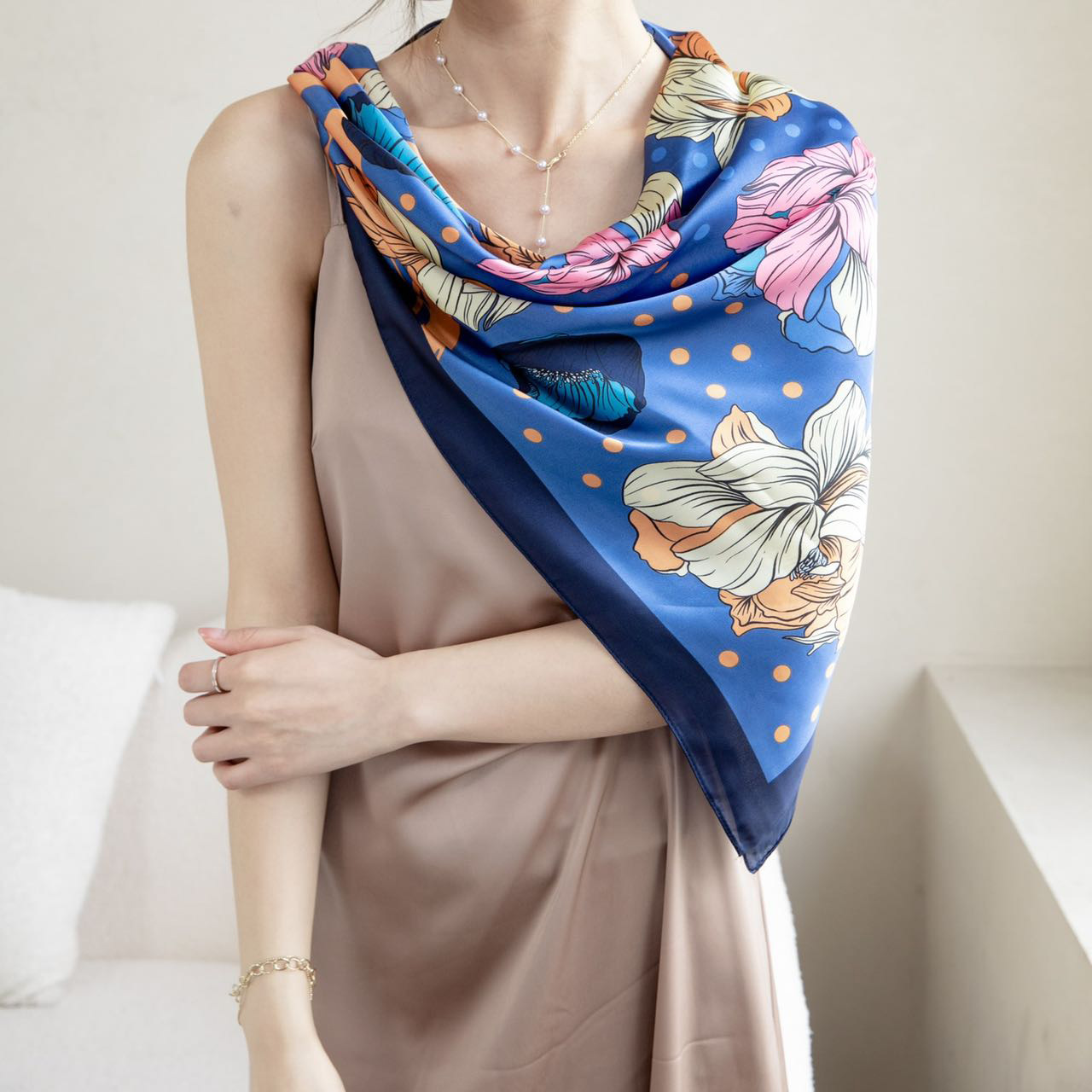 봄과 여름 새로운 90cm 큰 사각형 스카프 목가적 인 식물 꽃 스카프 한국 우아한 여성 목도리 스카프스토어 가기
