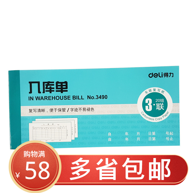델리 문서 3490 트리플 엔트리 주문 탄소 프리 카피, 일반 바우처 사무실 재정 상환 퇴색하기 쉽지 않음스토어 가기