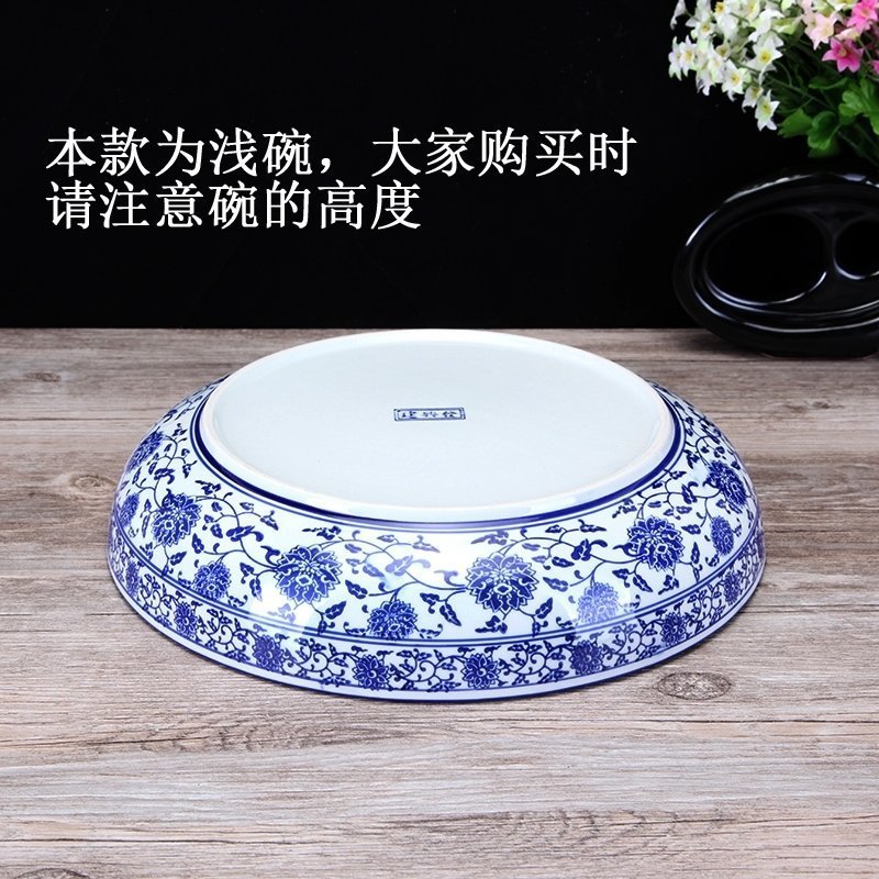 • 두꺼운 파란색과 흰색 도자기 연잎 그릇 12 인치 2000 ml