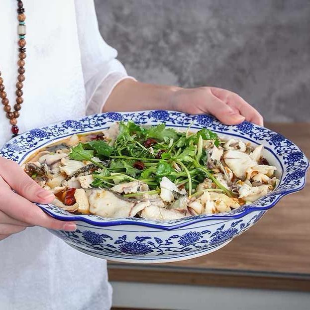파란색과 흰색 도자기 그릇 도매 세라믹 레트로 화상 방지 손 소금에 절인 양배추 생선 대야 그릇 수프 그릇 매운 냄비 그릇 마오카이 그릇 국수 그릇