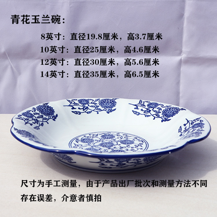 • 두꺼운 파란색과 흰색 도자기 목련 그릇 12 인치 2000 ml