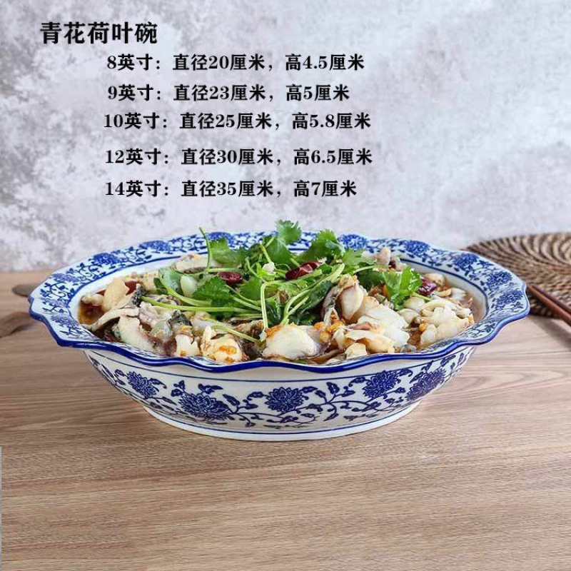 파란색과 흰색 도자기 그릇 도매 세라믹 레트로 화상 방지 손 소금에 절인 양배추 생선 대야 그릇 수프 그릇 매운 냄비 그릇 마오카이 그릇 국수 그릇스토어 가기