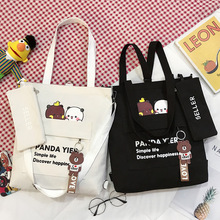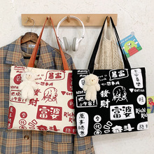 现货卡通单肩包帆布袋女百搭ins风休闲布包中小学补习袋手提袋