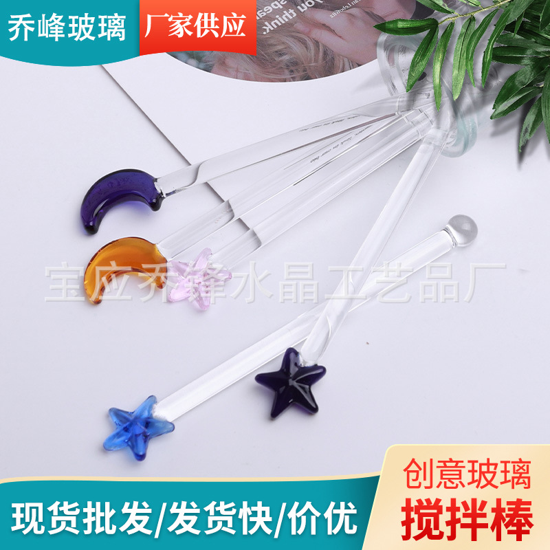 공장 손으로 만든 높은 붕규산 유리 교반 막대 귀여운 긴 손잡이 별 달 교반 숟가락 확장 믹싱로드스토어 가기