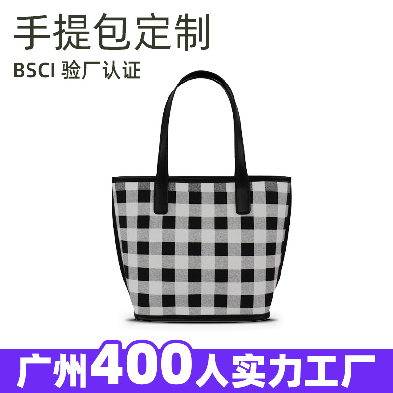 广州女包源头厂家定制双面编织包 手提pu女包订制 尼龙帆布托特包