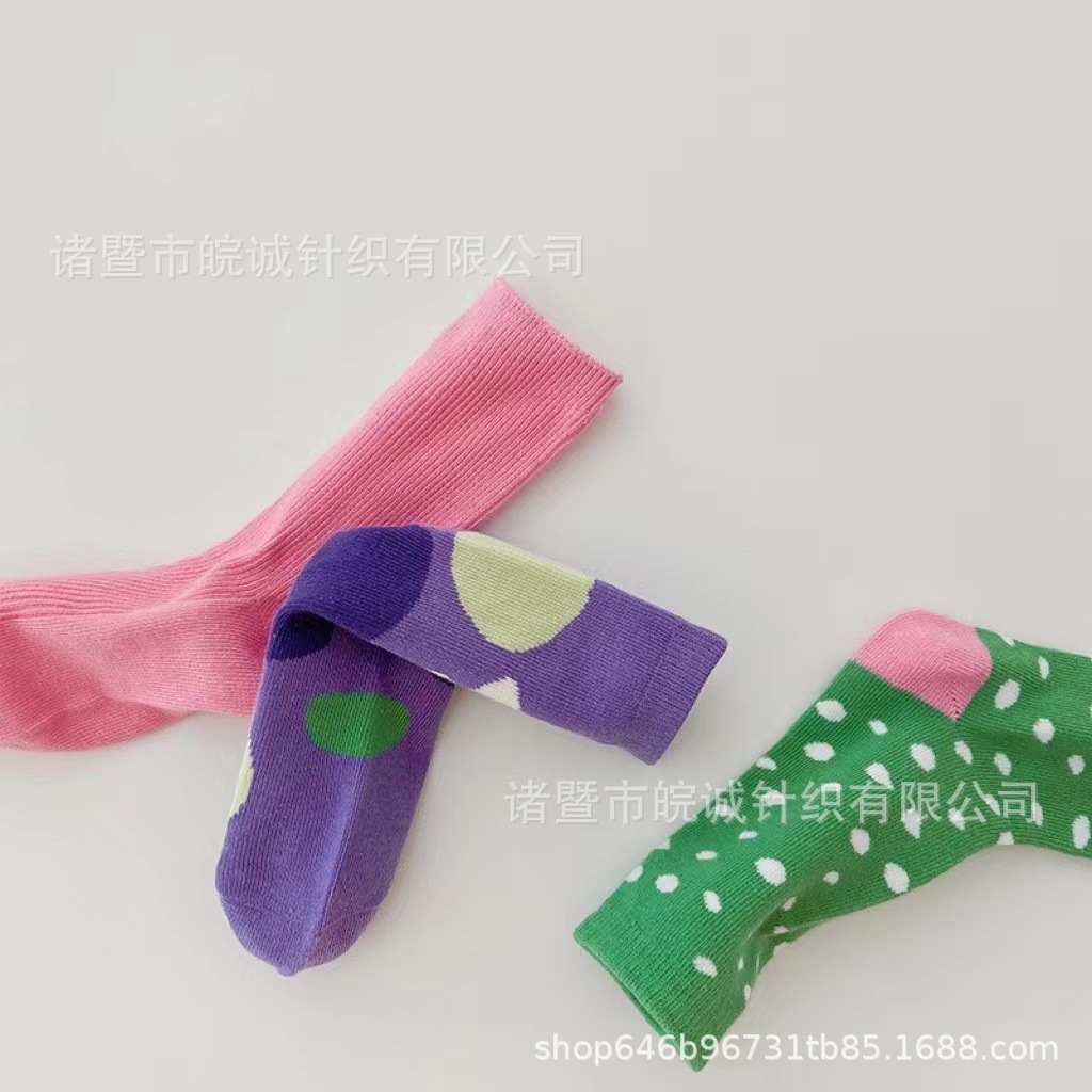 1085 어린이 양말 도매 2023 가을과 겨울 새로운 웨이브 도트 체크 무늬 대조 컬러 튜브 양말면 소년과 소녀 아기 양말스토어 가기