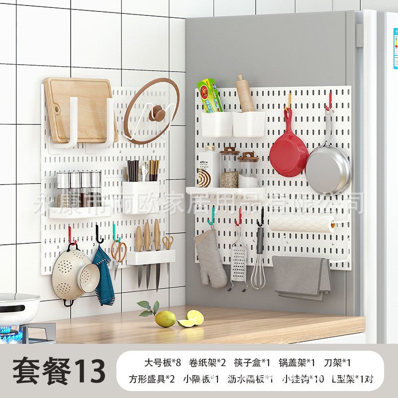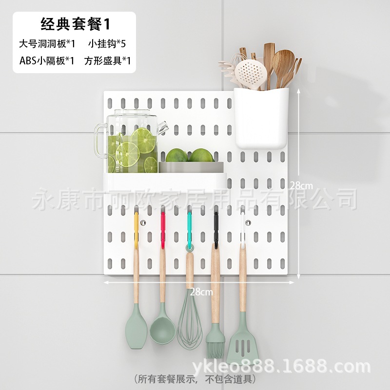 • 패키지 8: 대형 구멍 보드 4 색 작은 후크 5 문자 홀더 1 작은 파티션 1 젓가락 케이지 1 나이프 홀더 1