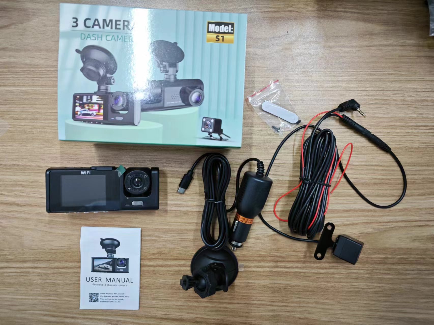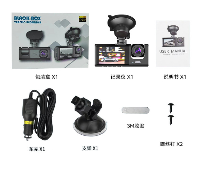 2寸屏私模行车记录仪3路高清1080P三镜头停车监控带夜视车载DVR