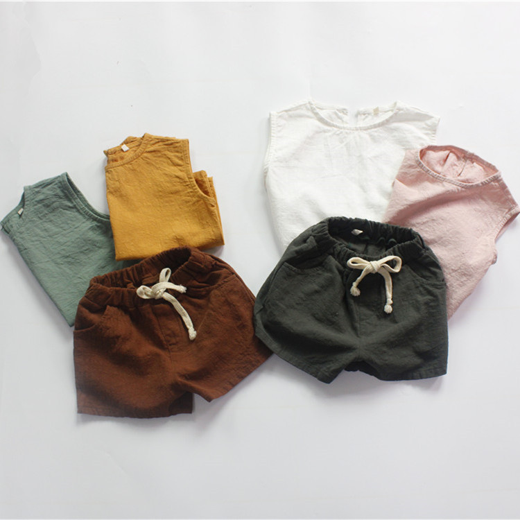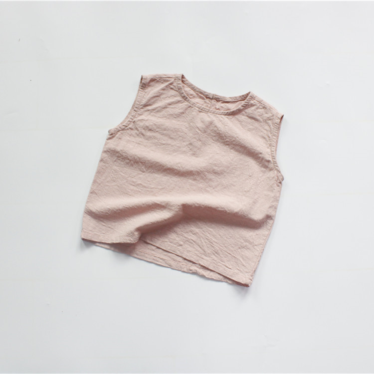 남아 및 여아용 신상 여름 조끼, 한국식 면 및 린넨 단색 숲 대나무 면 아기 및 아동용 상의, 민소매 배송