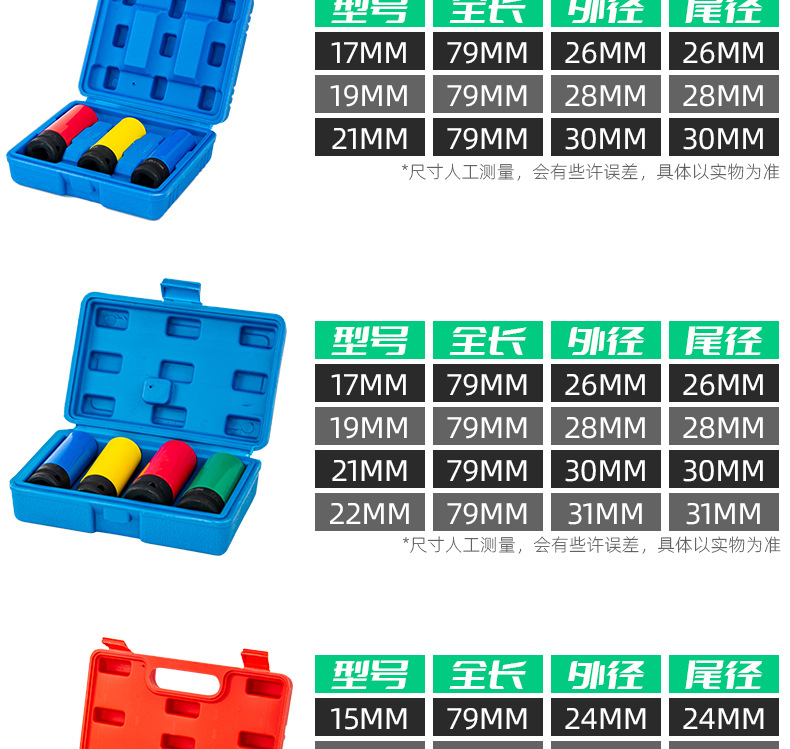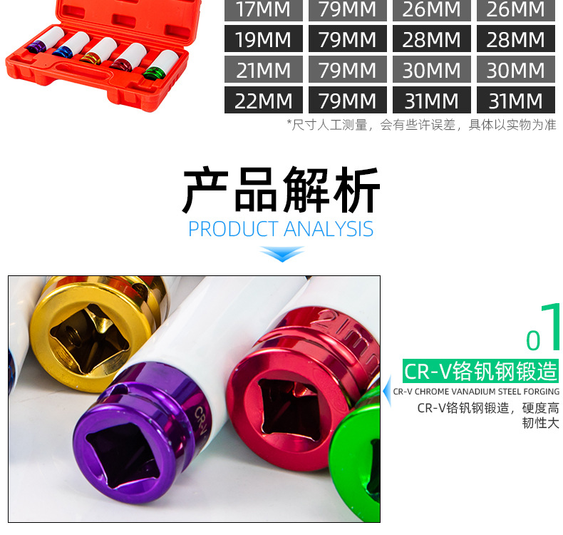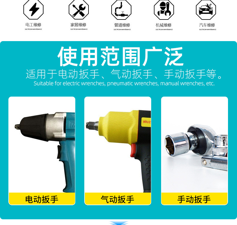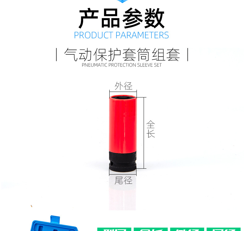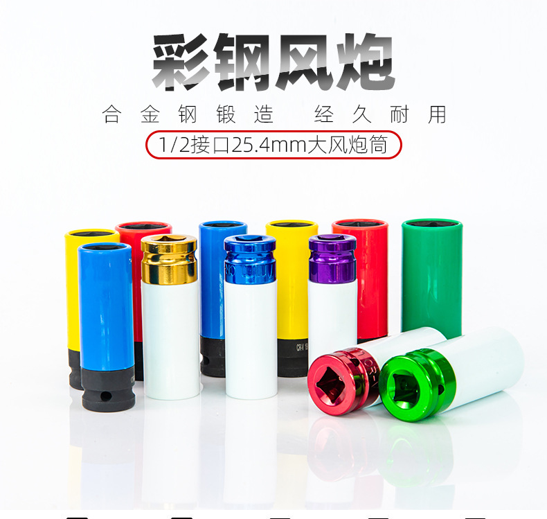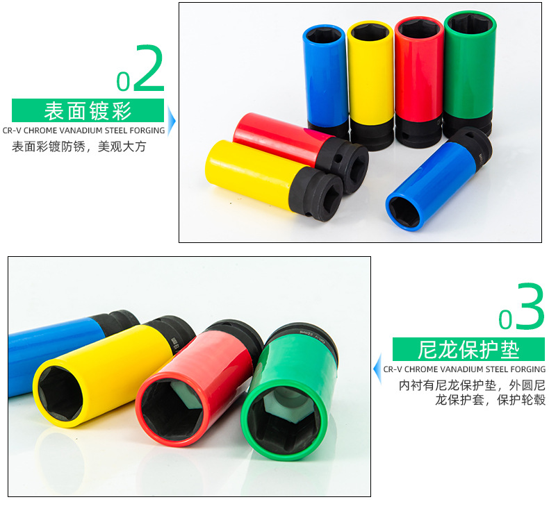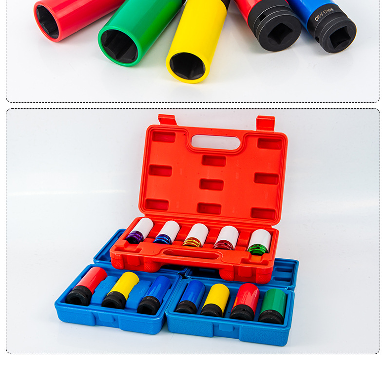 1/2 에어건 확장 컬러 타이어 나사 특수 소켓 세트 렌치 공압 타이어 분해 및 조립 보호 슬리브