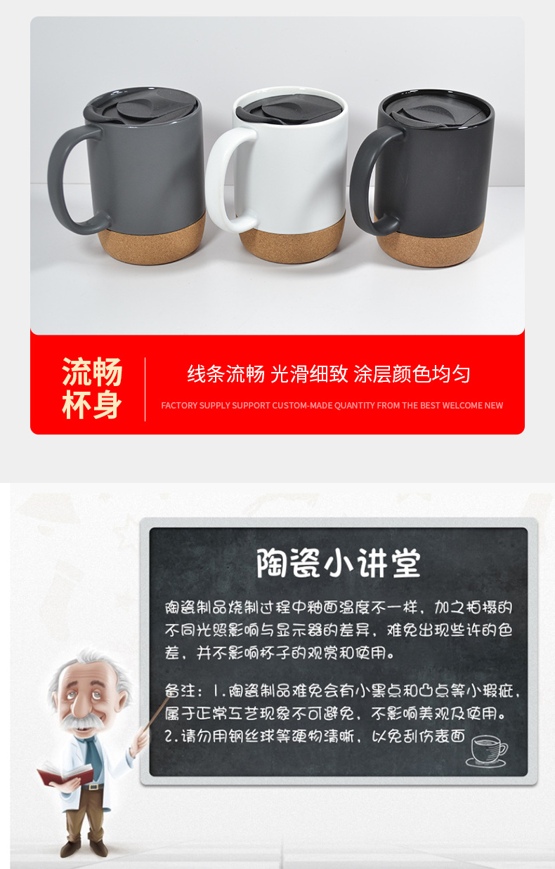 코르크 바닥 세라믹 컵 보산 세라믹 제조 업체 도매 재고 플라스틱 뚜껑 세라믹 머그잔스토어 가기