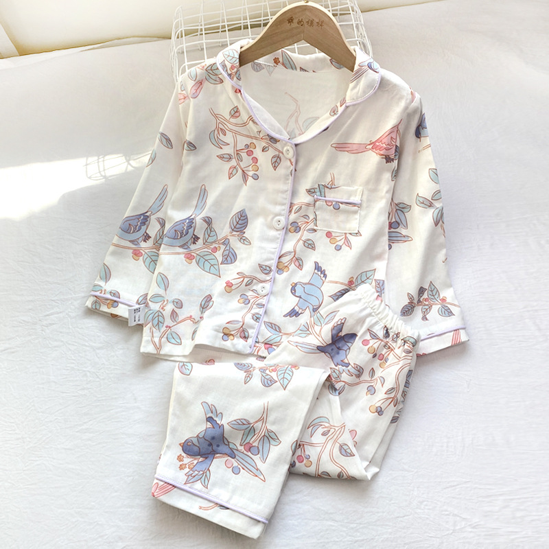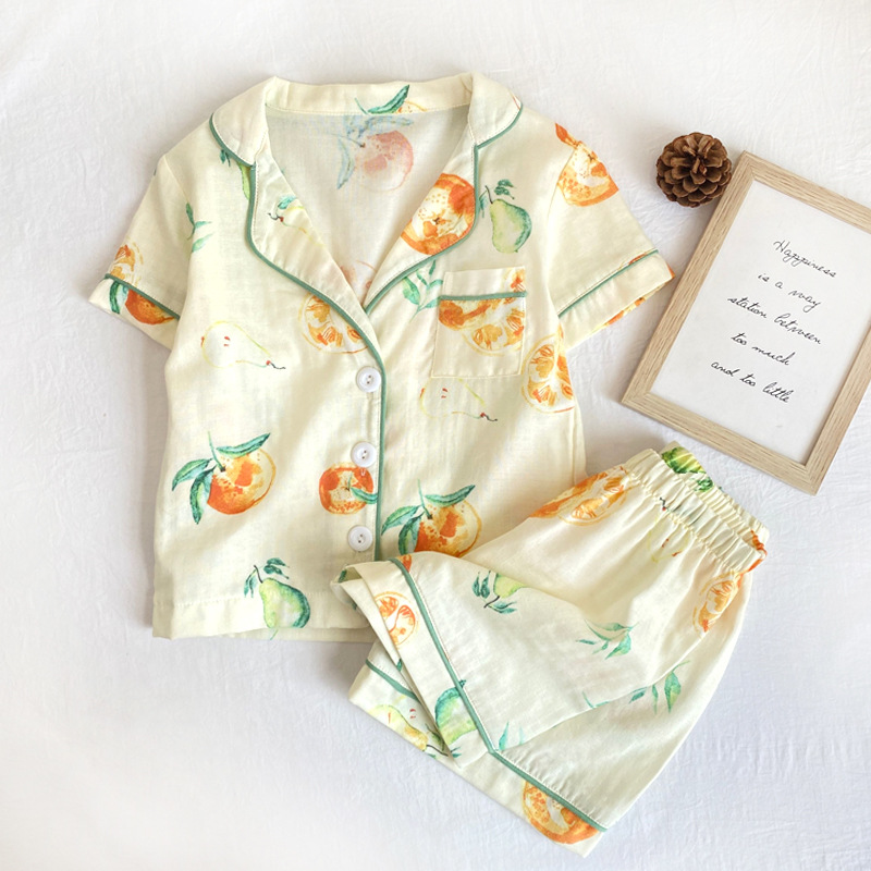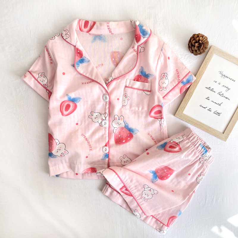 어린이 잠옷 여름 얇은 반팔 세트 순면 거즈 봄과 여름 여아 아기 에어컨 옷 남아 가정복