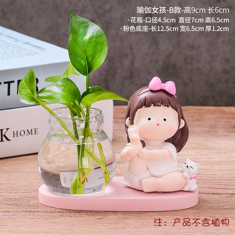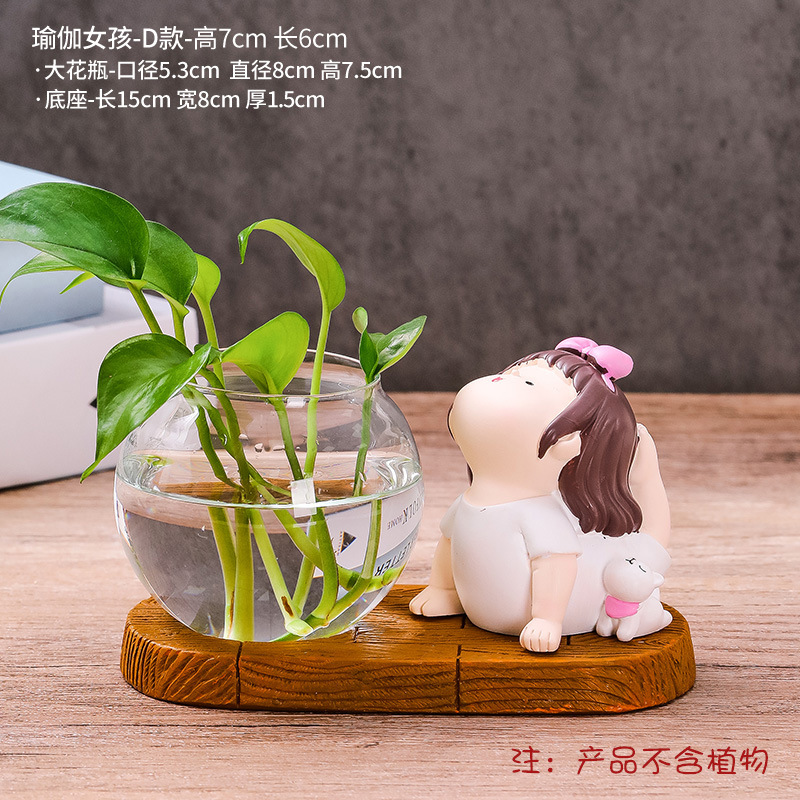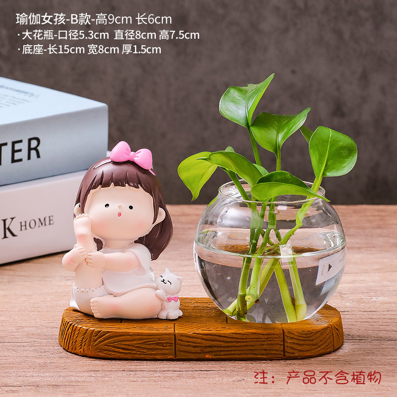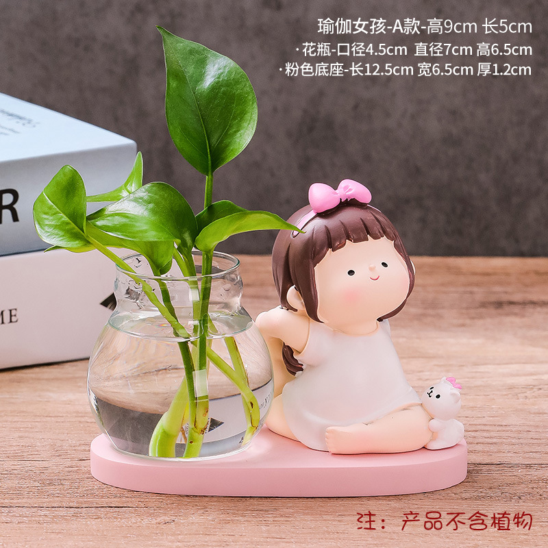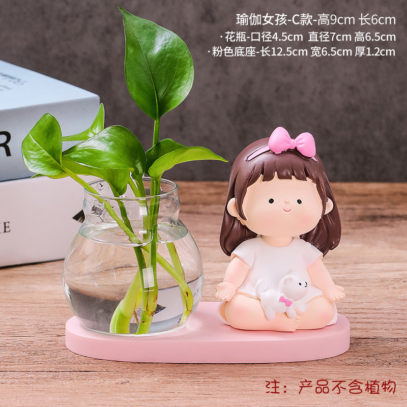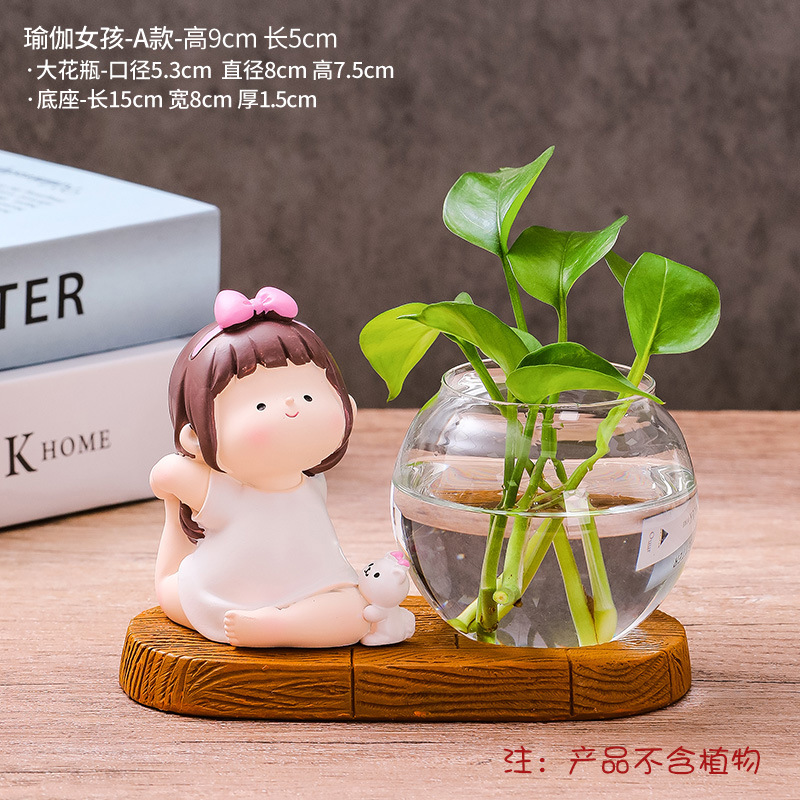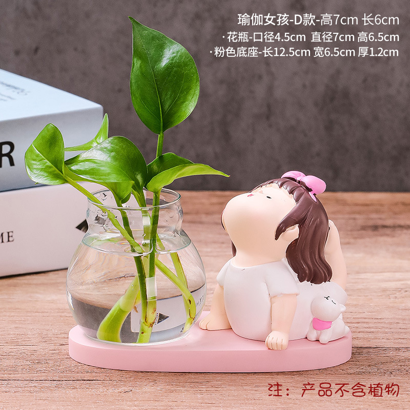 당이가 창조적 인 요가 소녀 수경 가정 장식 창조적 인 귀여운 인형 녹색 꽃병 책상 장식