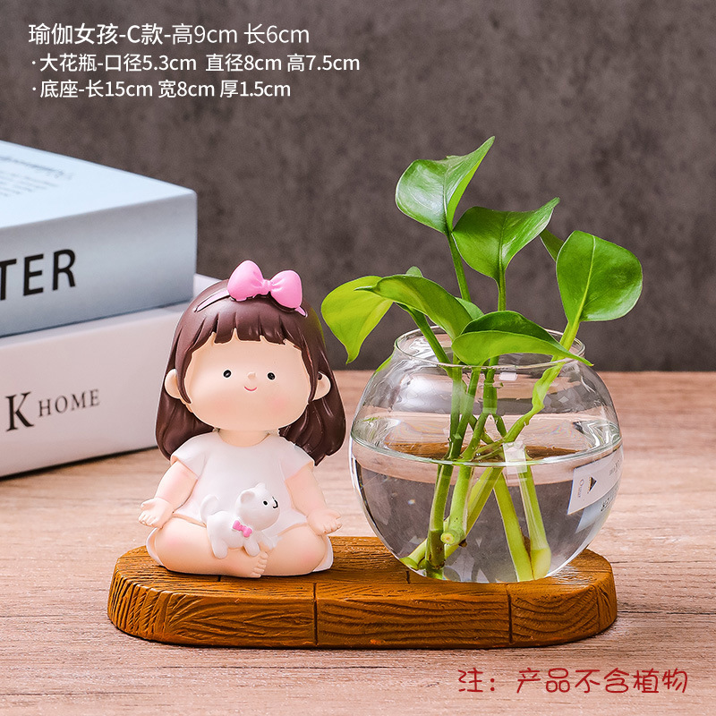 당이가 창조적 인 요가 소녀 수경 가정 장식 창조적 인 귀여운 인형 녹색 꽃병 책상 장식스토어 가기