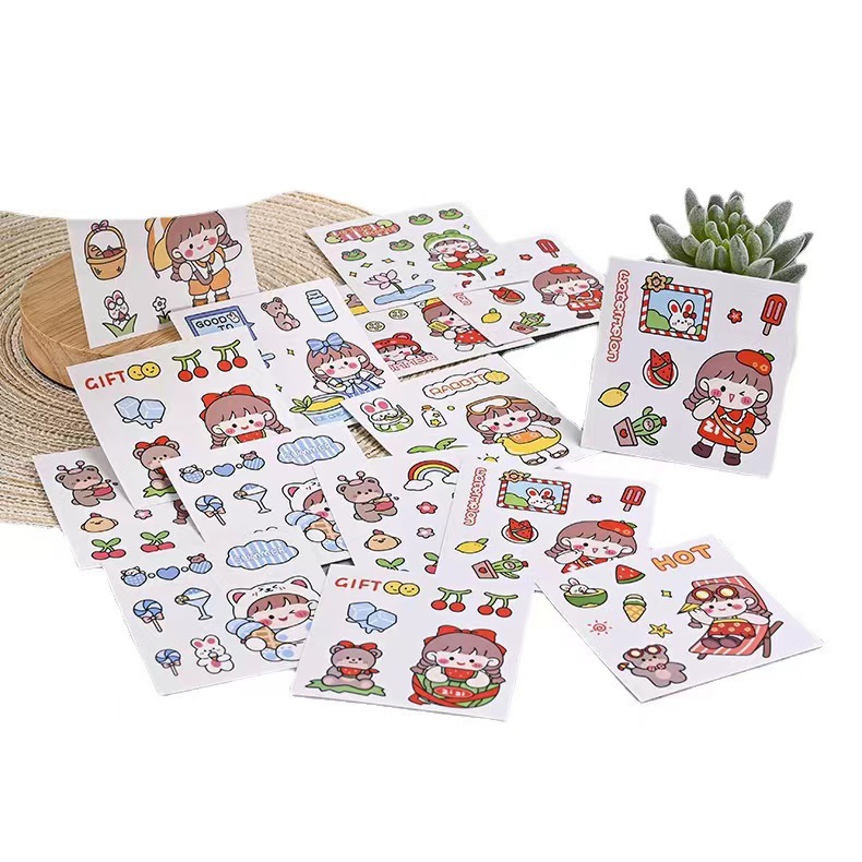한국 인 귀여운 스티커 만화 보온병 컵 스티커 창조적 인 손 계정 휴대 전화 스티커 소녀의 심장 컵 투명 pvc스토어 가기