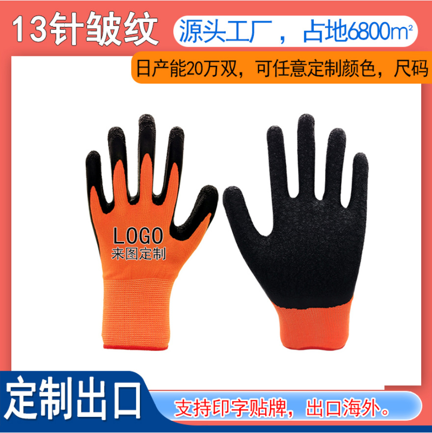 고탄력 13 핀 퍼플 스트라이프 폴리에스테르 스판덱스 혼합 고무 주름 장갑 미끄럼 방지 내마모성 통기성 소프트