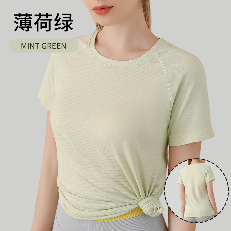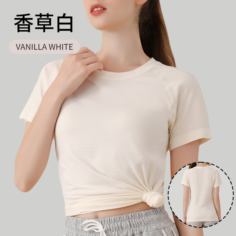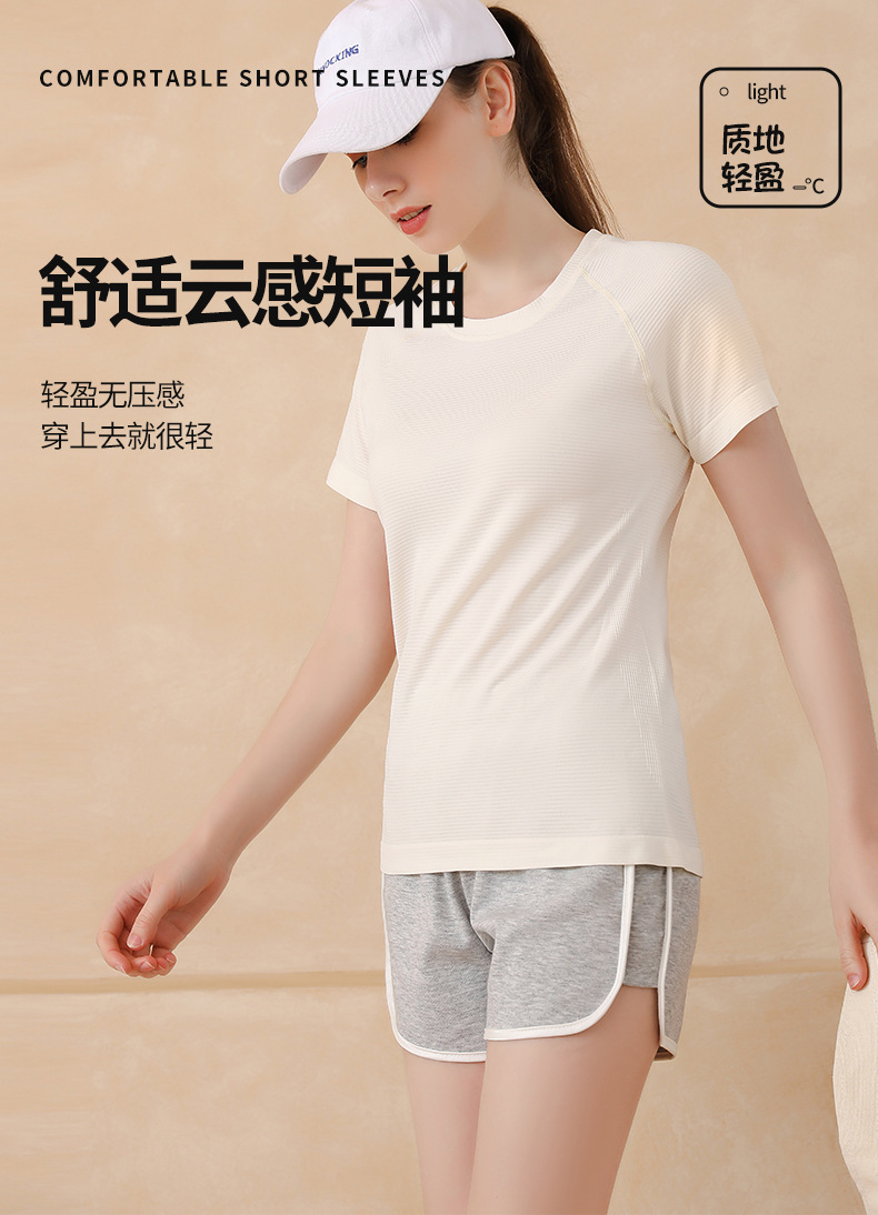 무봉제 누드 느낌 요가복 반팔 스포츠 탑 여성용 티셔츠 커버업 야외 테니스복 통기성 속건 피트니스복스토어 가기