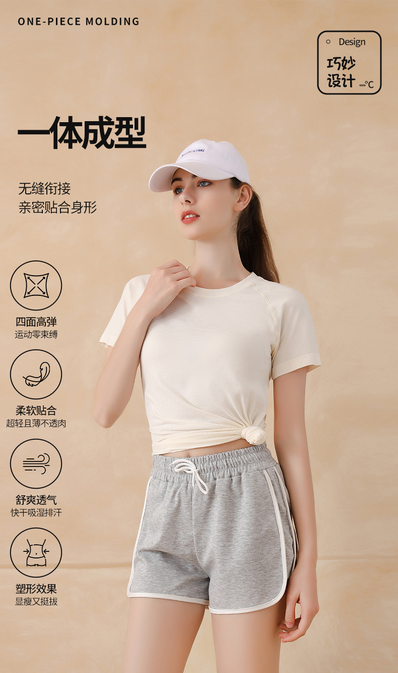 무봉제 누드 느낌 요가복 반팔 스포츠 탑 여성용 티셔츠 커버업 야외 테니스복 통기성 속건 피트니스복