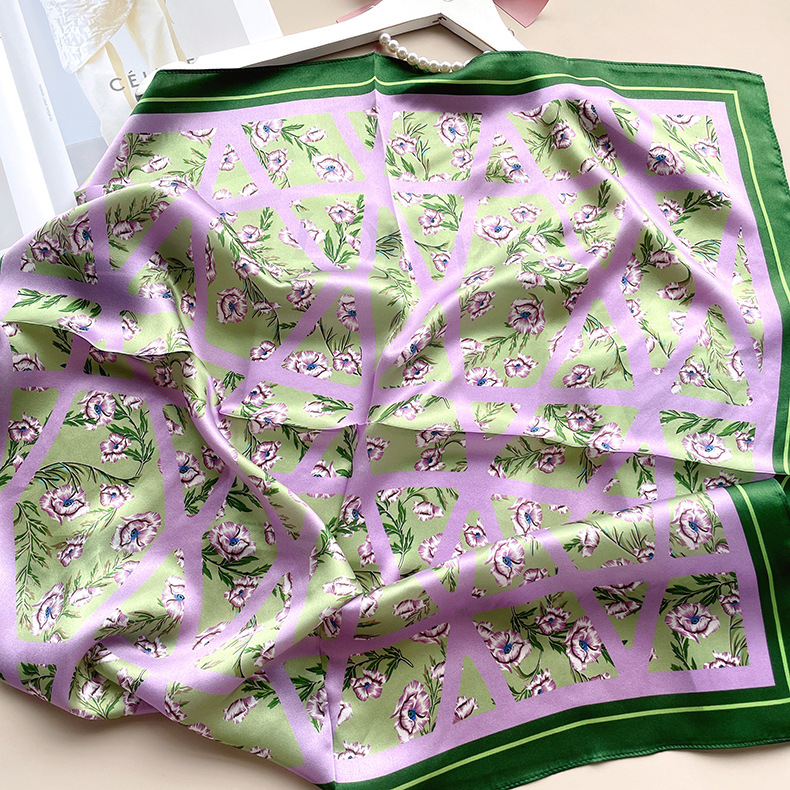 프랑스 로맨틱 빈티지 퍼플 실버 연꽃 씨앗 봄과 가을 모든 매치 실크 70cm 스퀘어 실크 뽕나무 실크 새틴 스카프 여성