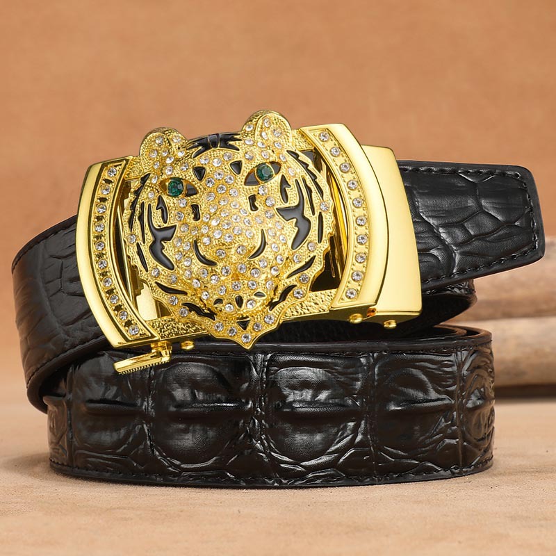 타이거 가죽 벨트 남성용 정품 가죽 모든 경기 TikTok 라이브 온라인 인기 자동 버클 트렌디 한 비즈니스 타이거 헤드 소가죽 벨트
