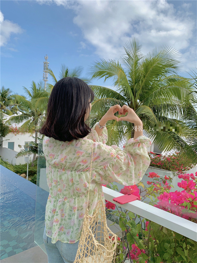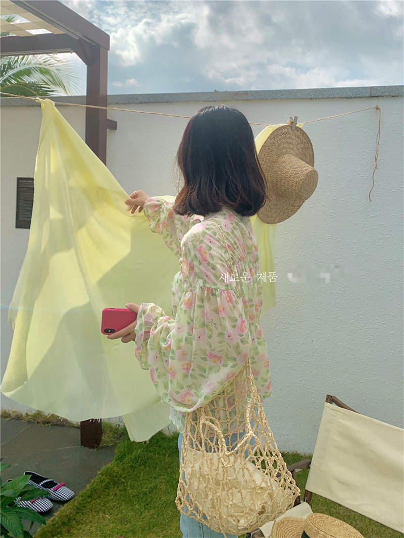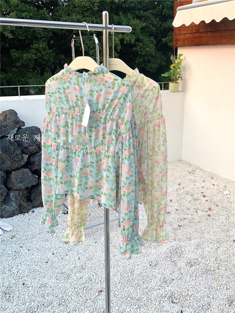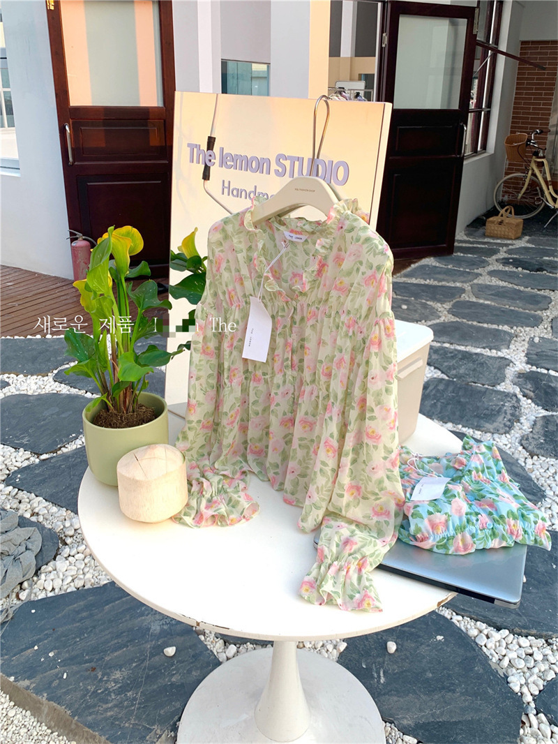여성용 레트로 꽃무늬 셔츠 봄 2025 브이넥 얇은 허리 긴팔 탑 살짝 비치는 피부 친화적인 쉬폰 셔츠스토어 가기