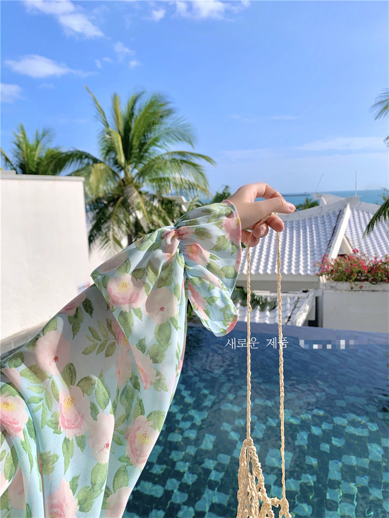 여성용 레트로 꽃무늬 셔츠 봄 2025 브이넥 얇은 허리 긴팔 탑 살짝 비치는 피부 친화적인 쉬폰 셔츠
