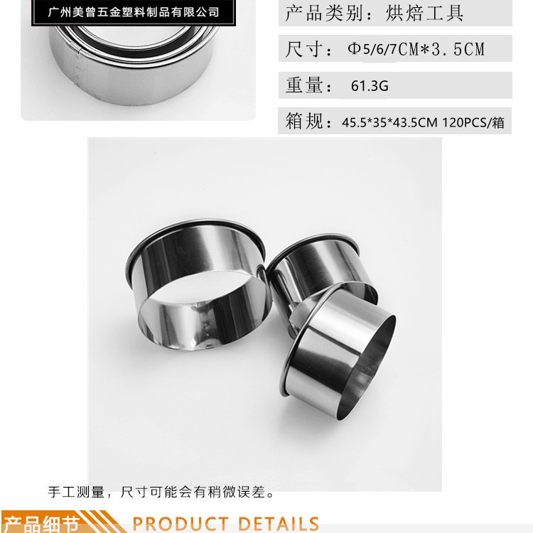 产品名称: 新手烘焙模具3件套 不锈钢 圆形蛋糕模 饼干模 蛋糕模切模 西点模具