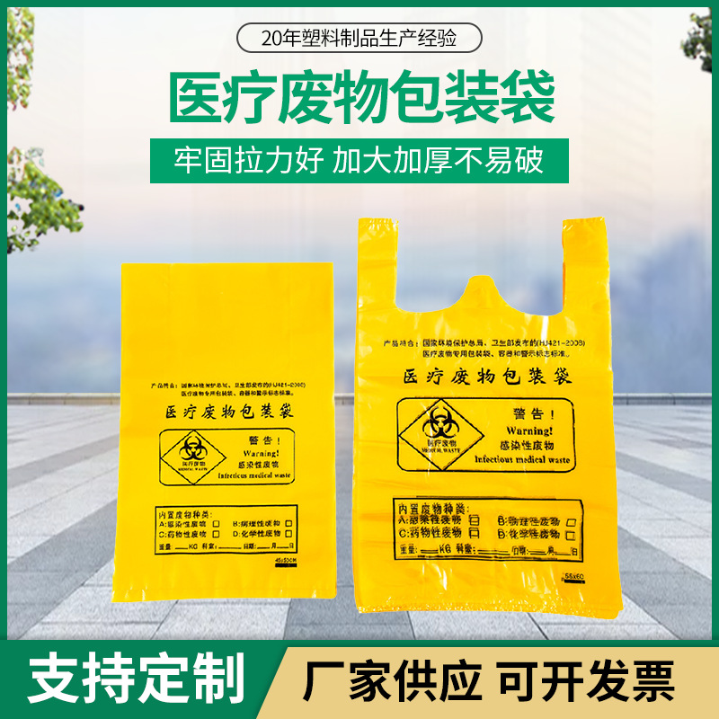 도매 의료 쓰레기 봉투 노란색 대형 두꺼운 플랫 입 일회용 휴대용 클리닉 병원 의료 비닐 봉투스토어 가기