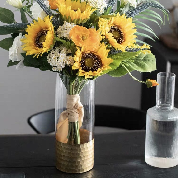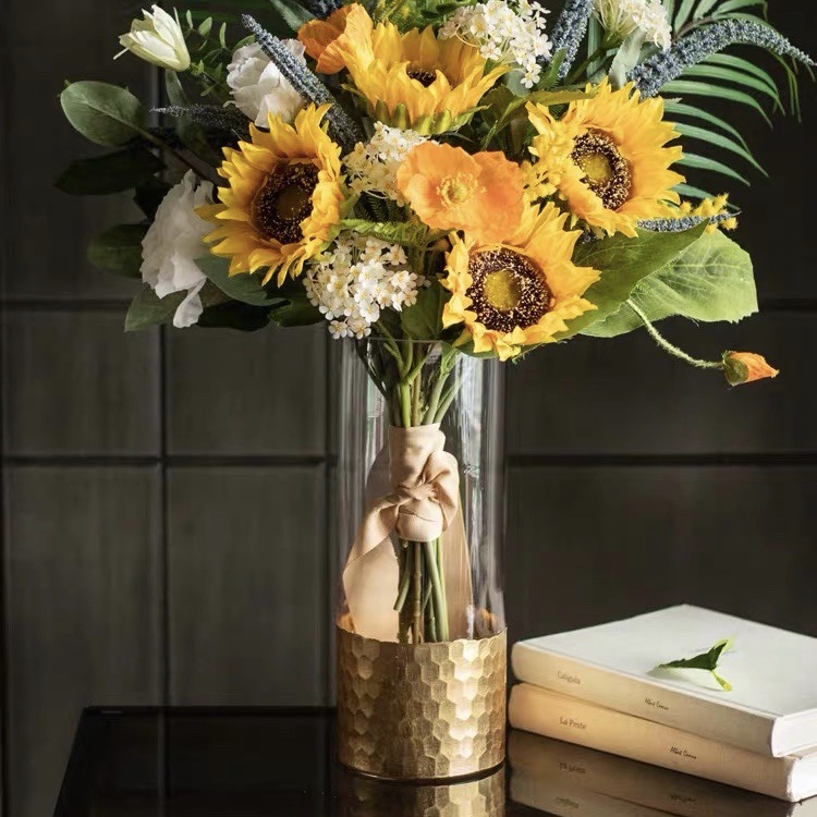 미리 결정된 유럽식 금도금 조각 황금 물고기 스케일 패턴 스트레이트 꽃병 웨딩 도로 모델 룸 장식 장식품