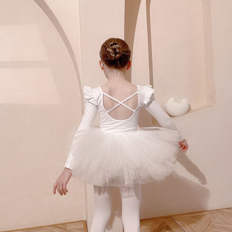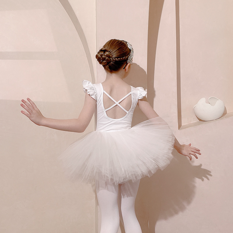 어린이 댄스 의상 여름 여아 연습 옷 발레 스커트 소녀의 중국 춤 분할 세트 거즈 스커트 화이트