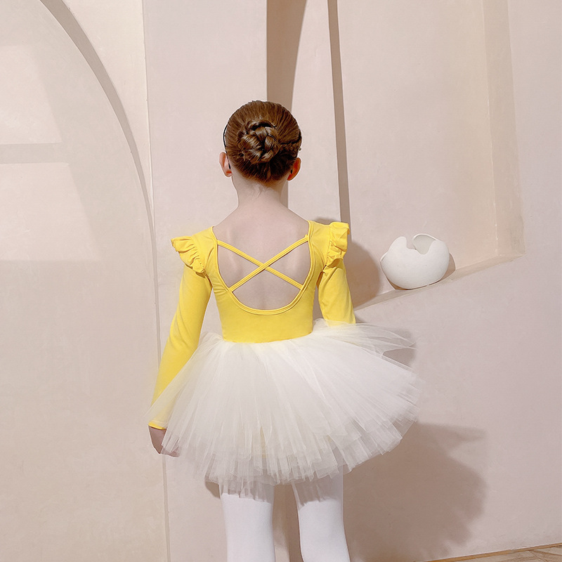• 노란색 긴 소매 옷 + 거즈 스커트