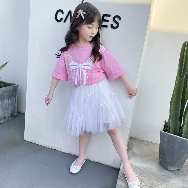 소녀 세트 2023 여름 새 어린이 반팔 투피스 메쉬 스커트 인쇄 나비 세트스토어 가기