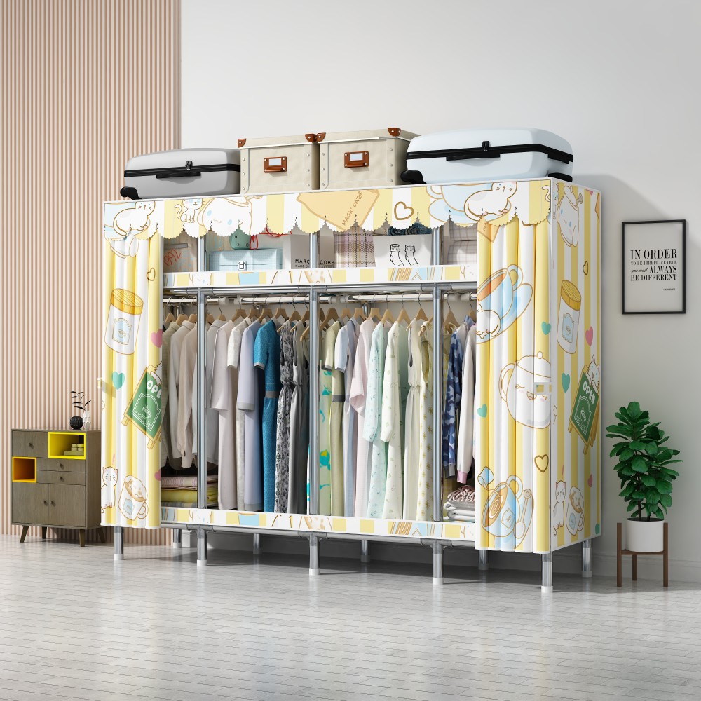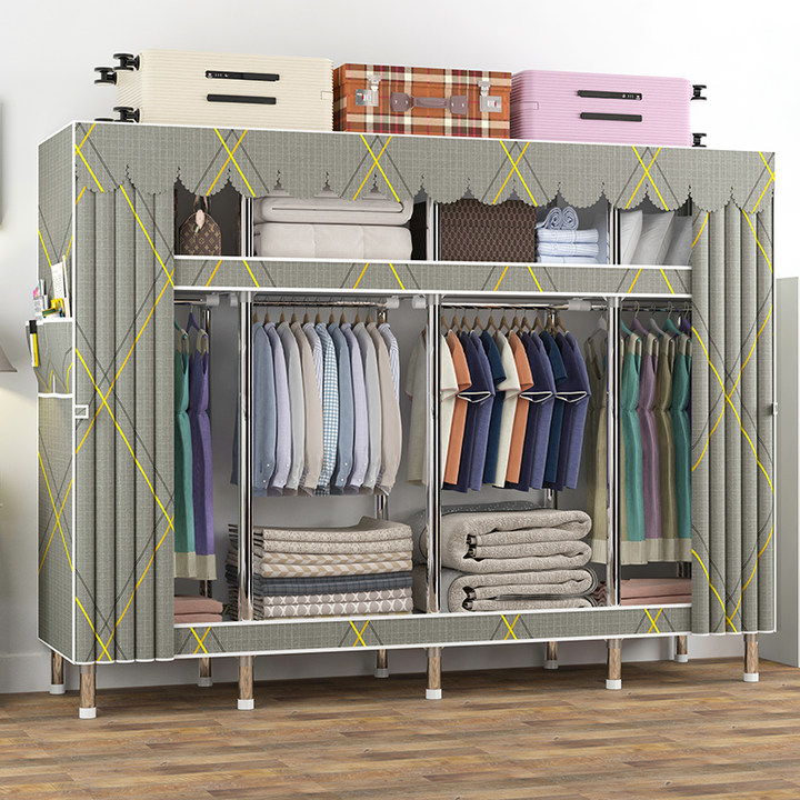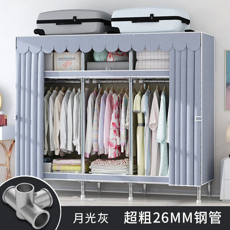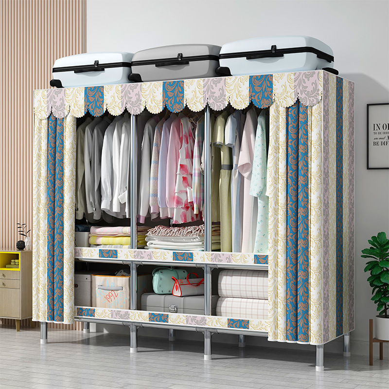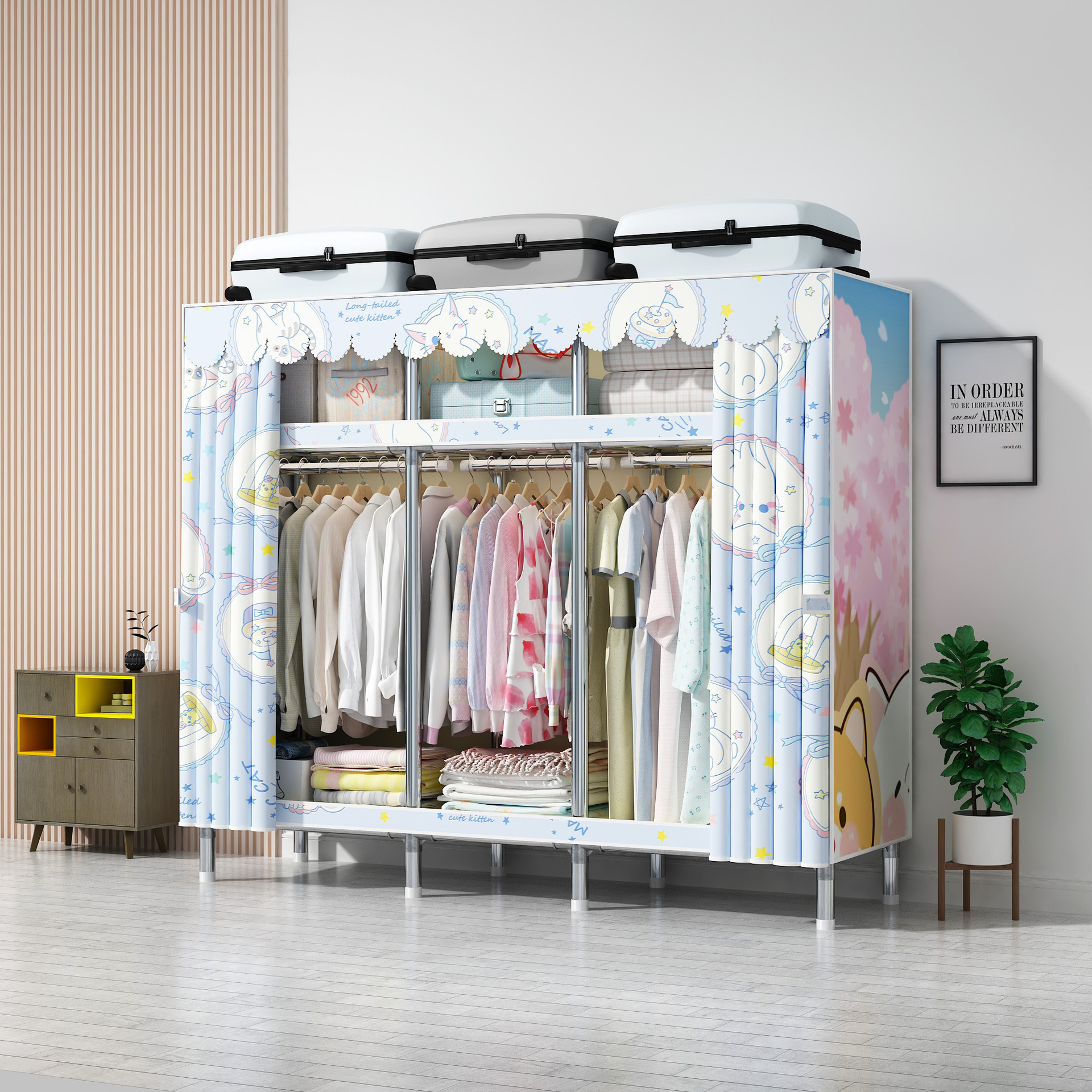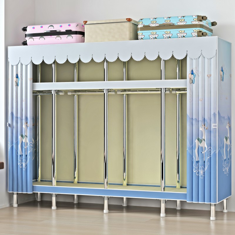 간단한 옷장 강관 두꺼운 강화 합금 인터페이스 천 옷장 간단한 경제적 인 조립 보관 옷장
