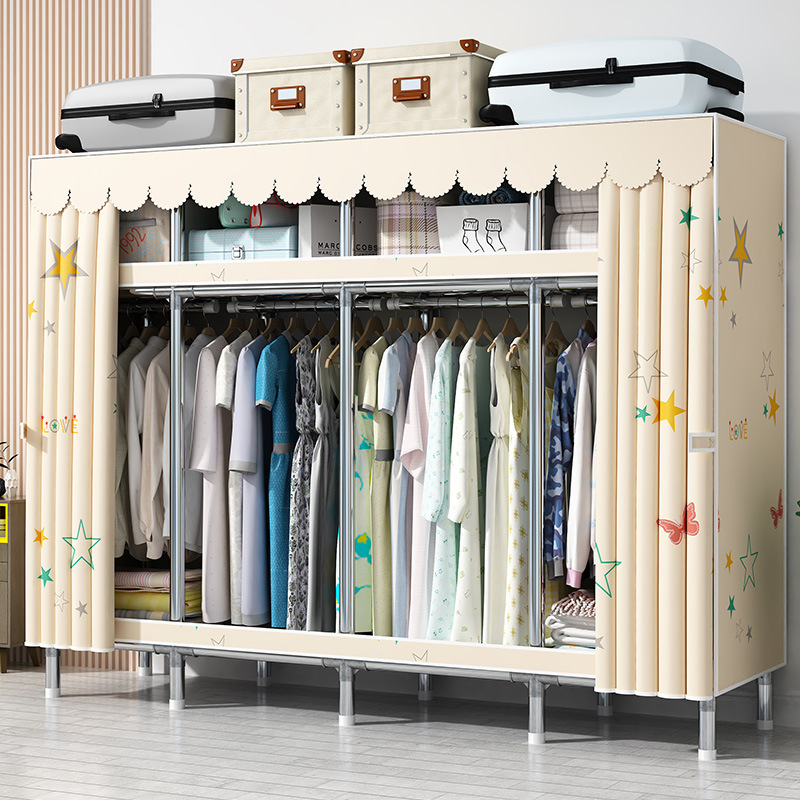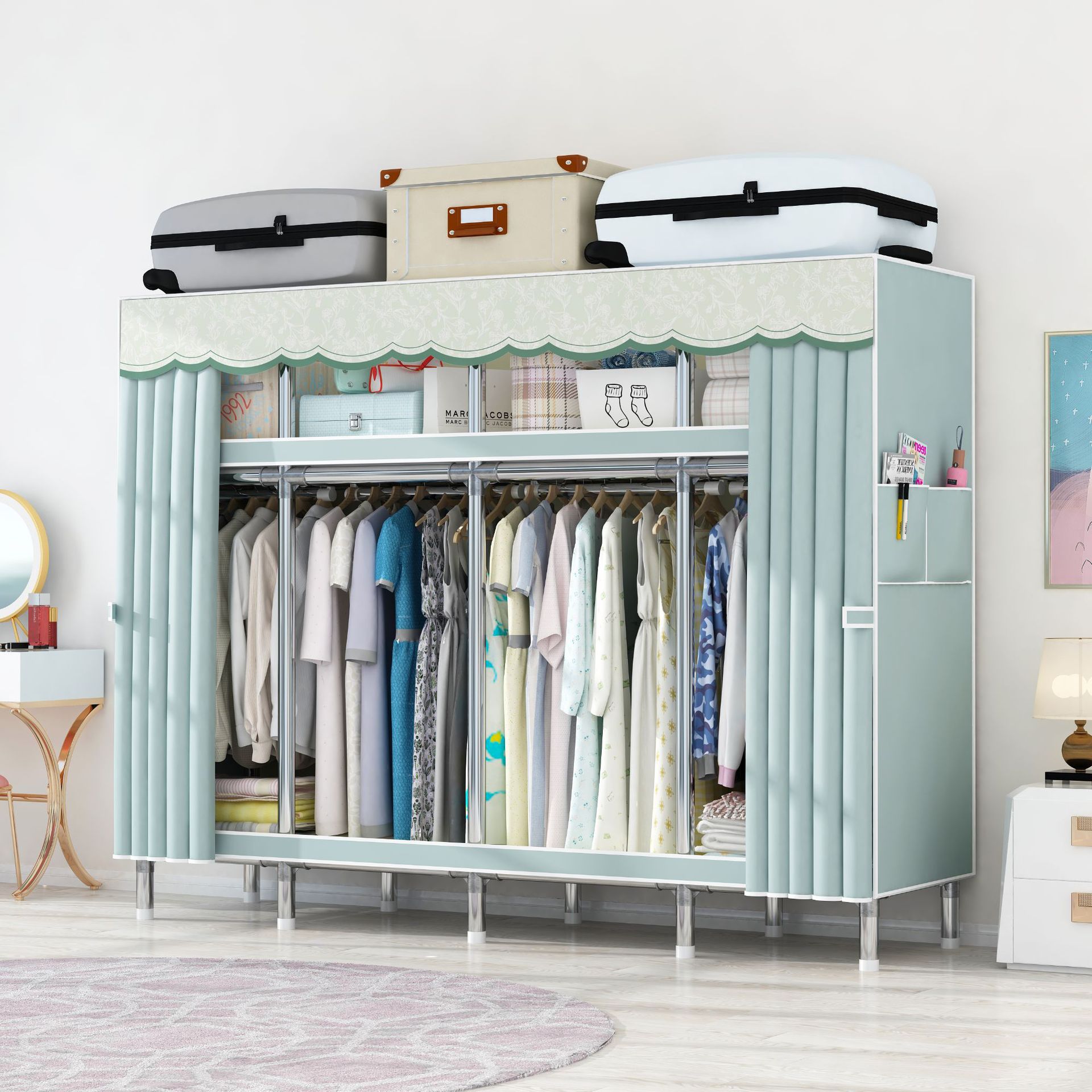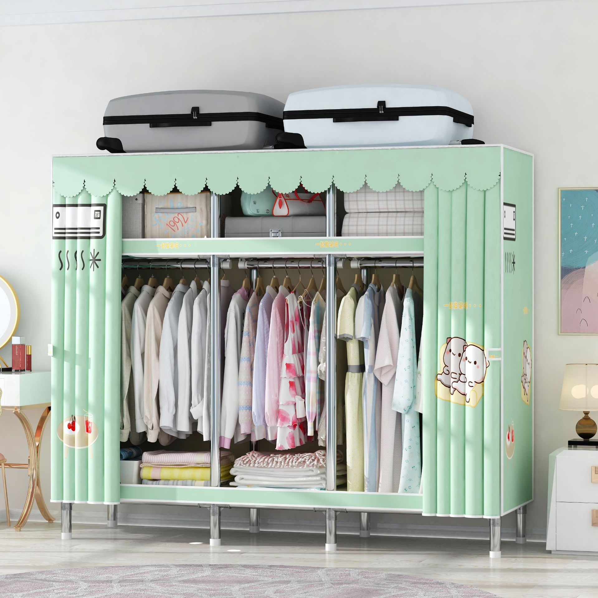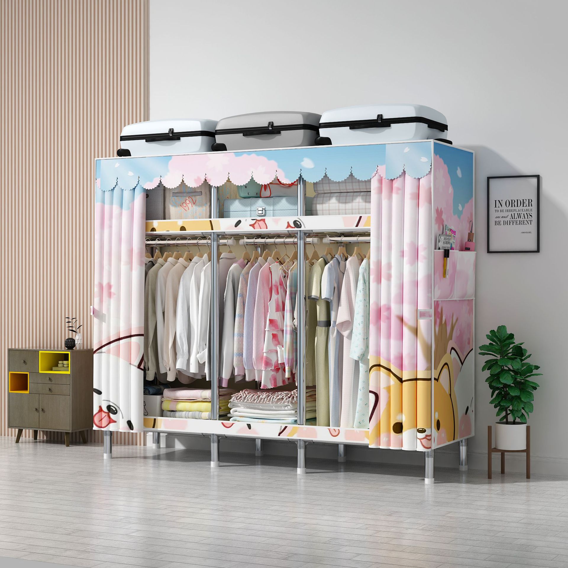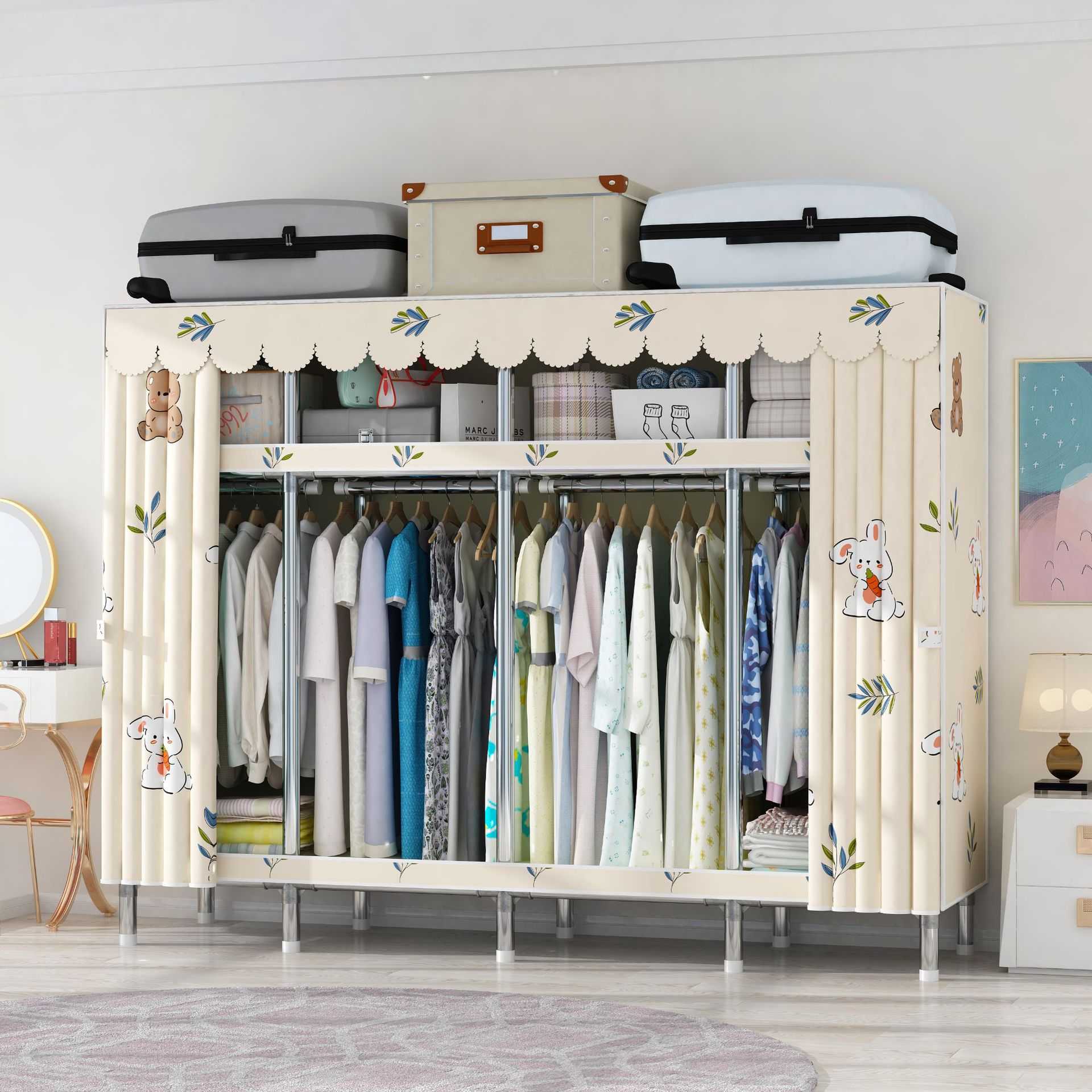 간단한 옷장 강관 두꺼운 강화 합금 인터페이스 천 옷장 간단한 경제적 인 조립 보관 옷장