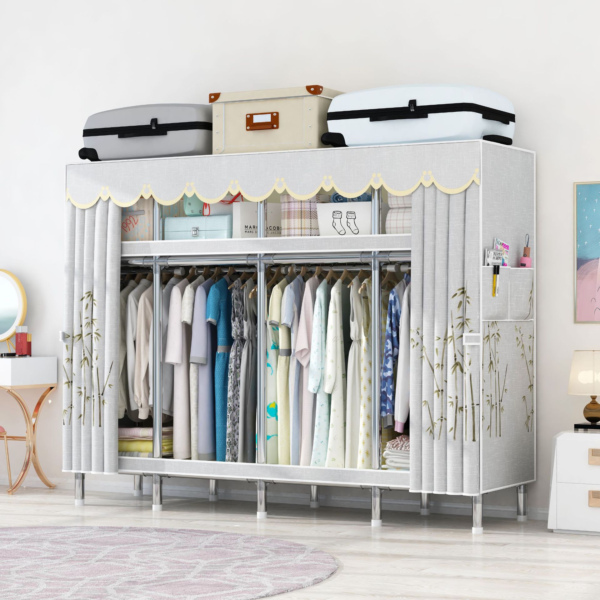 간단한 옷장 강관 두꺼운 강화 합금 인터페이스 천 옷장 간단한 경제적 인 조립 보관 옷장스토어 가기