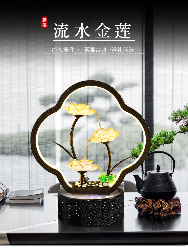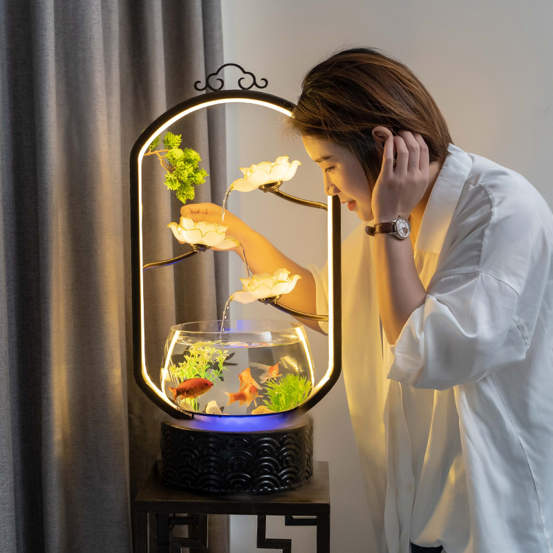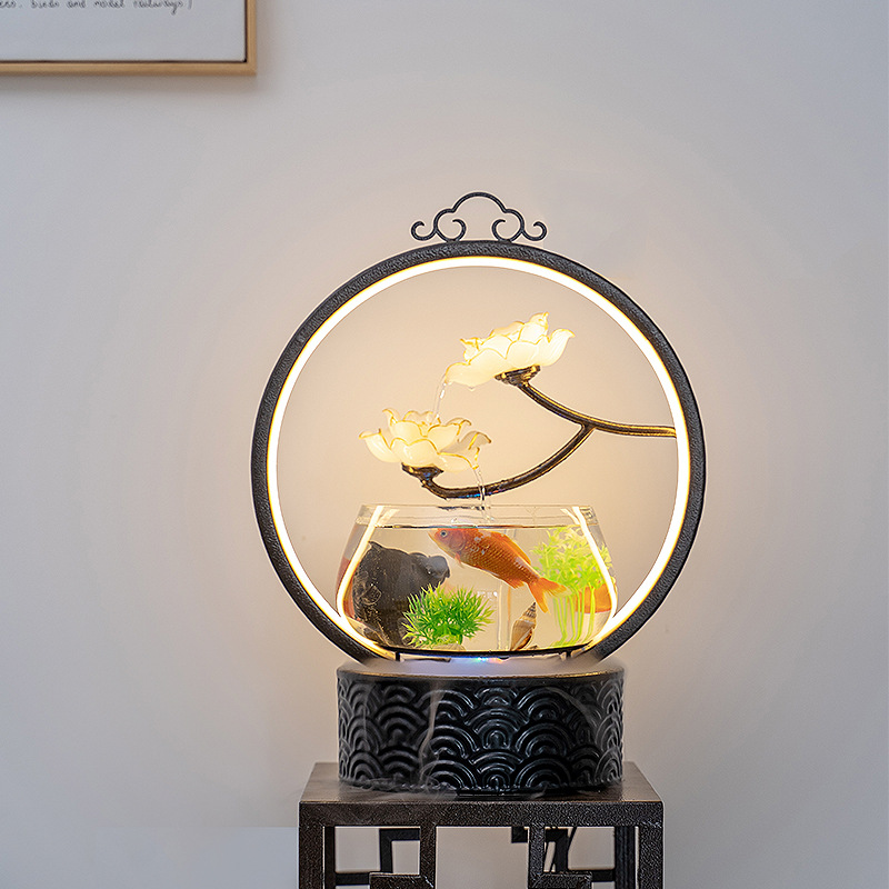 중국 스타일 빛 럭셔리 세라믹 재활용 행운의 분수 장식 홈 거실 실내 창조적 인 데스크탑 풍경 어항스토어 가기