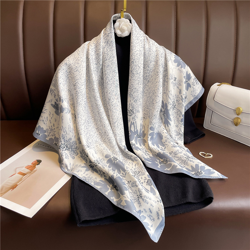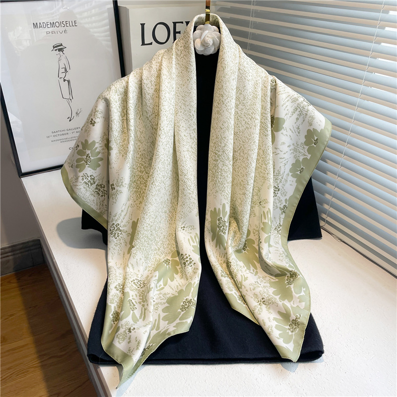 심플 프린트 실크 스카프 여성용 새로운 2022 대형 스퀘어 스카프 90cm 능직 실크 빈티지 모든 매치 숄 여행 자외선 차단제 머리 스카프스토어 가기